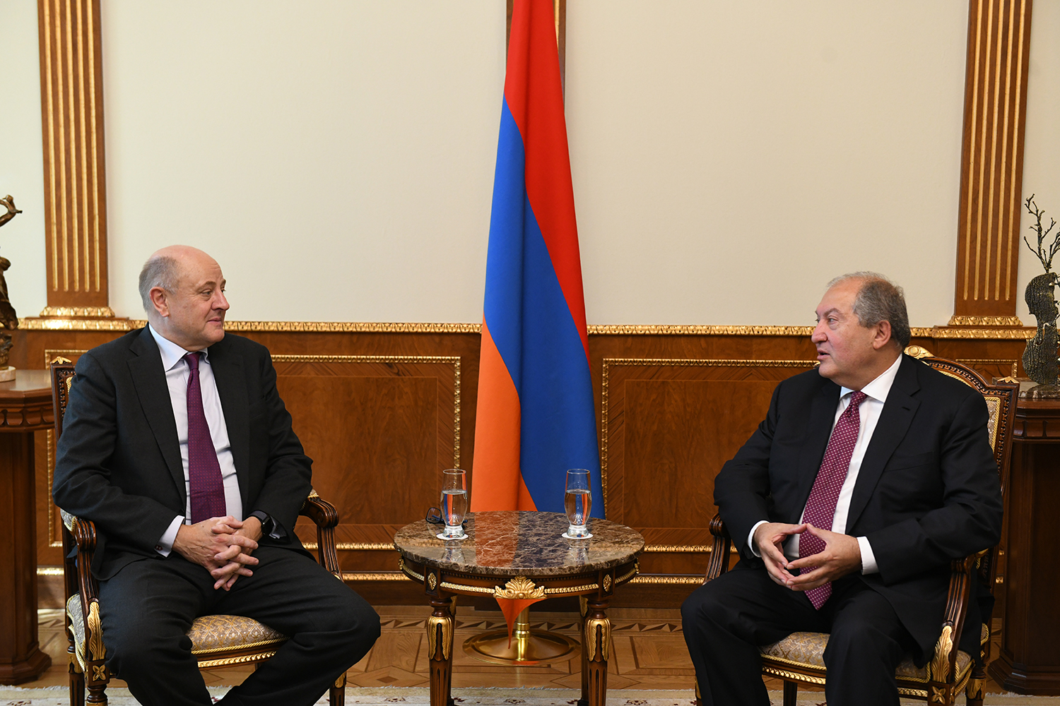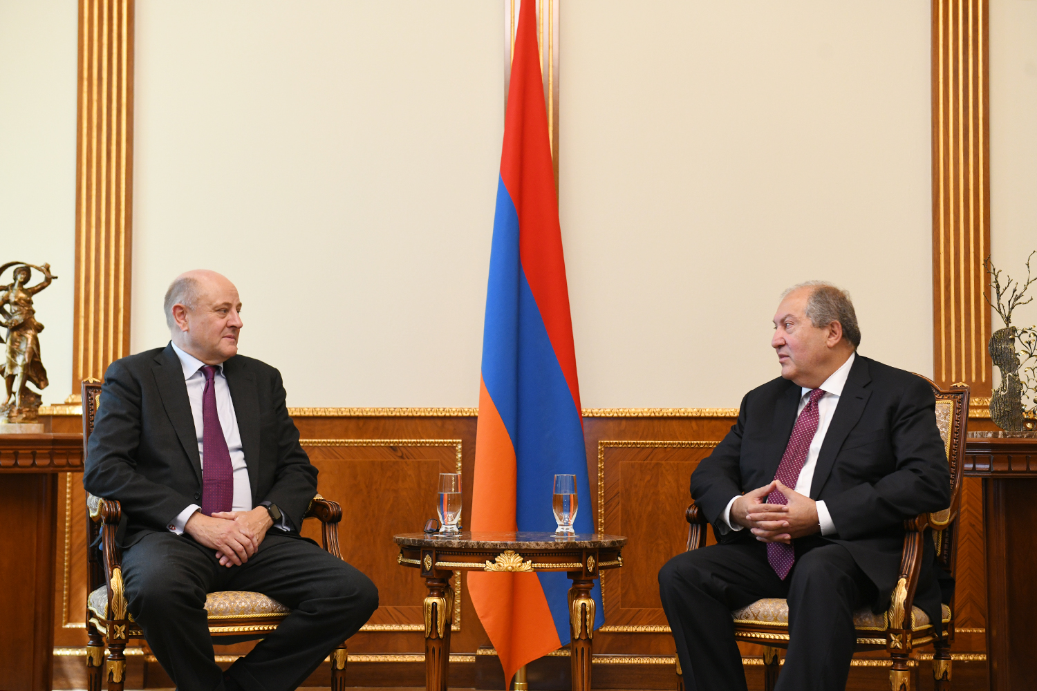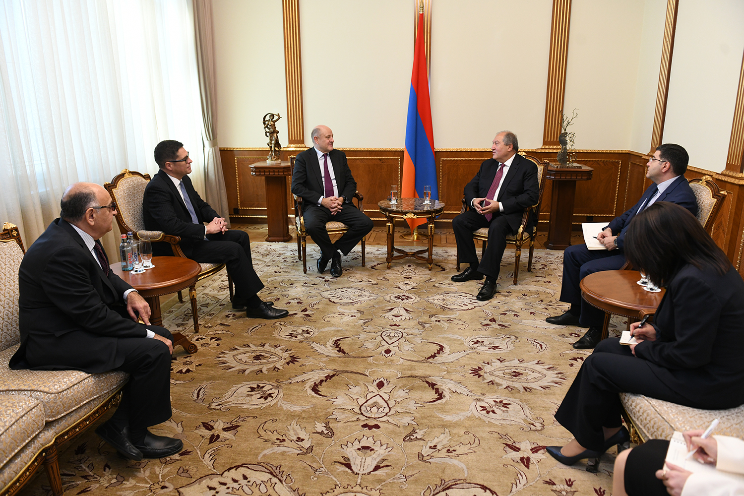 President Armen Sarkissian received today the Chief Executive Officer of International at HSBC Bank for Europe and Africa Christopher Davies and Chief Executive Officer of HSBC Bank Armenia Paul Edgar.