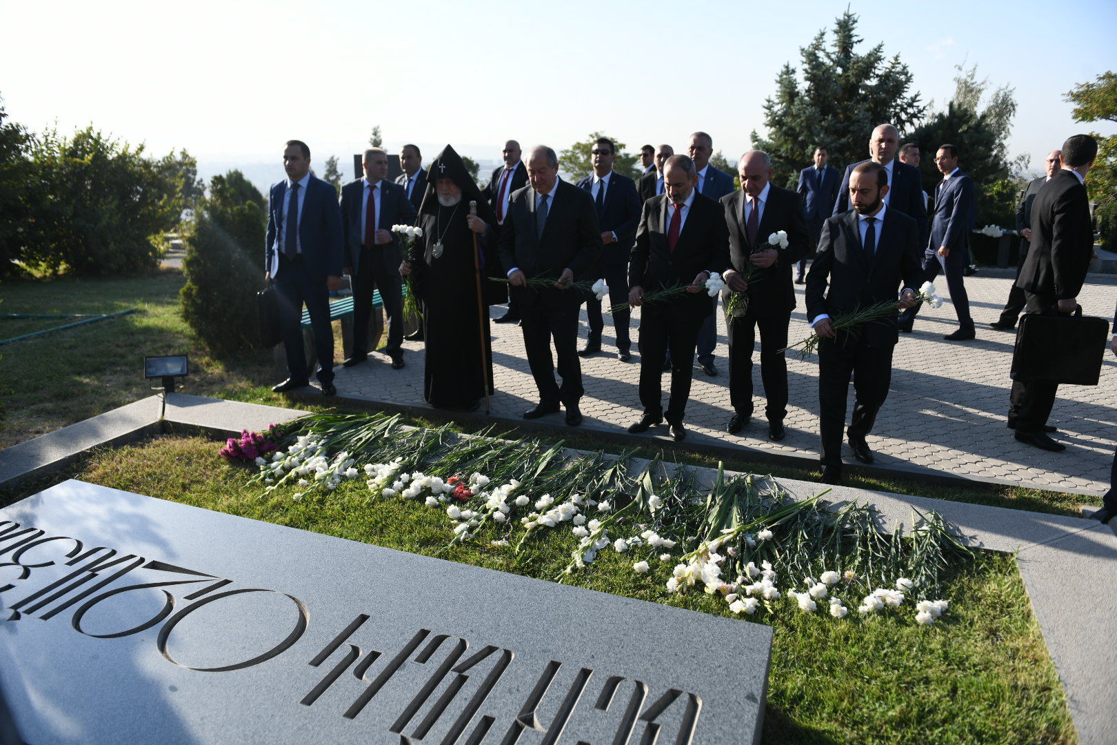 On the occasion of Independence Day, President Armen Sarkissian together with His Holiness Supreme Patriarch and Catholicos of All Armenians Garegin II, Prime Minister Nikol Pashinian, President of Artsakh Bako Sahakian, Speaker of the National Assembly Ararat Mirzoyan, members of the National Security Council, and the highest echelon of the Ministry of Defense and Armed Forces visited the Erablur military pantheon and paid tribute to the memory of the fallen heroes who sacrificed their lives for Armenia’s independence.