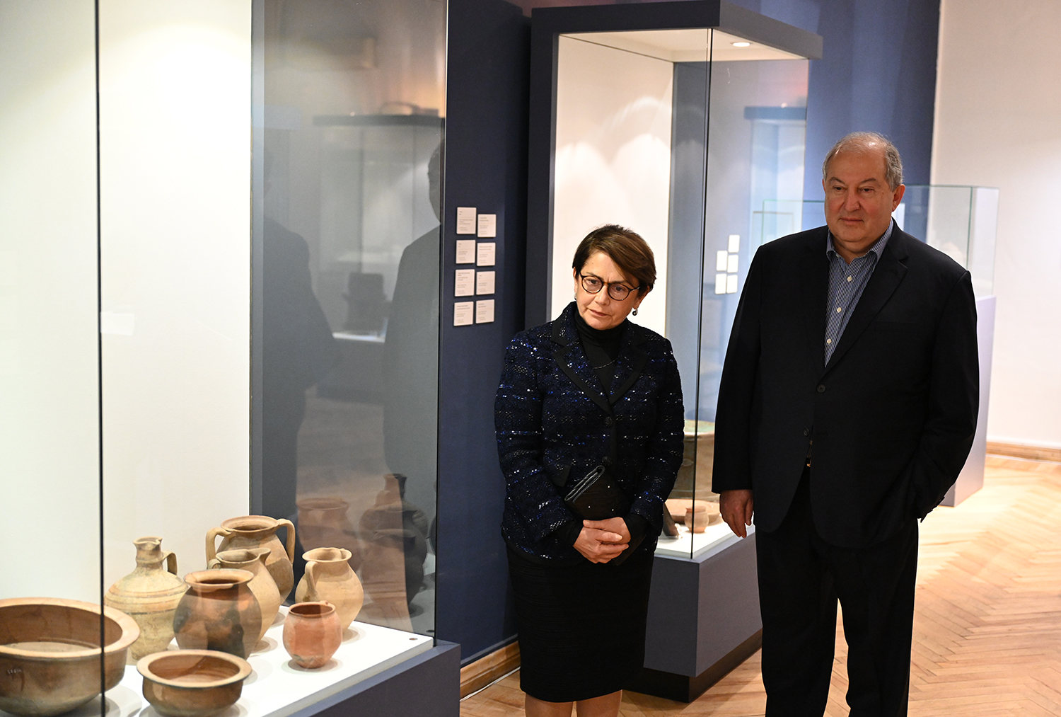 President Armen Sarkissian and Mrs. Nouneh Sarkissian, accompanied by the Ambassador of Italy to Armenia Alfonso Di Riso, toured the exhibition halls and got acquainted with the archaeological exhibits of the ancient Roman city.