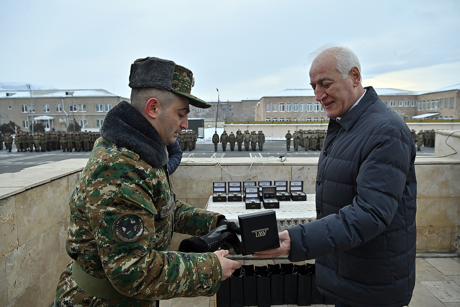 Greeting the personnel of the unit, President Khachaturyan expressed his gratitude for their conscientious and exemplary service and extended his congratulations on the upcoming holidays.