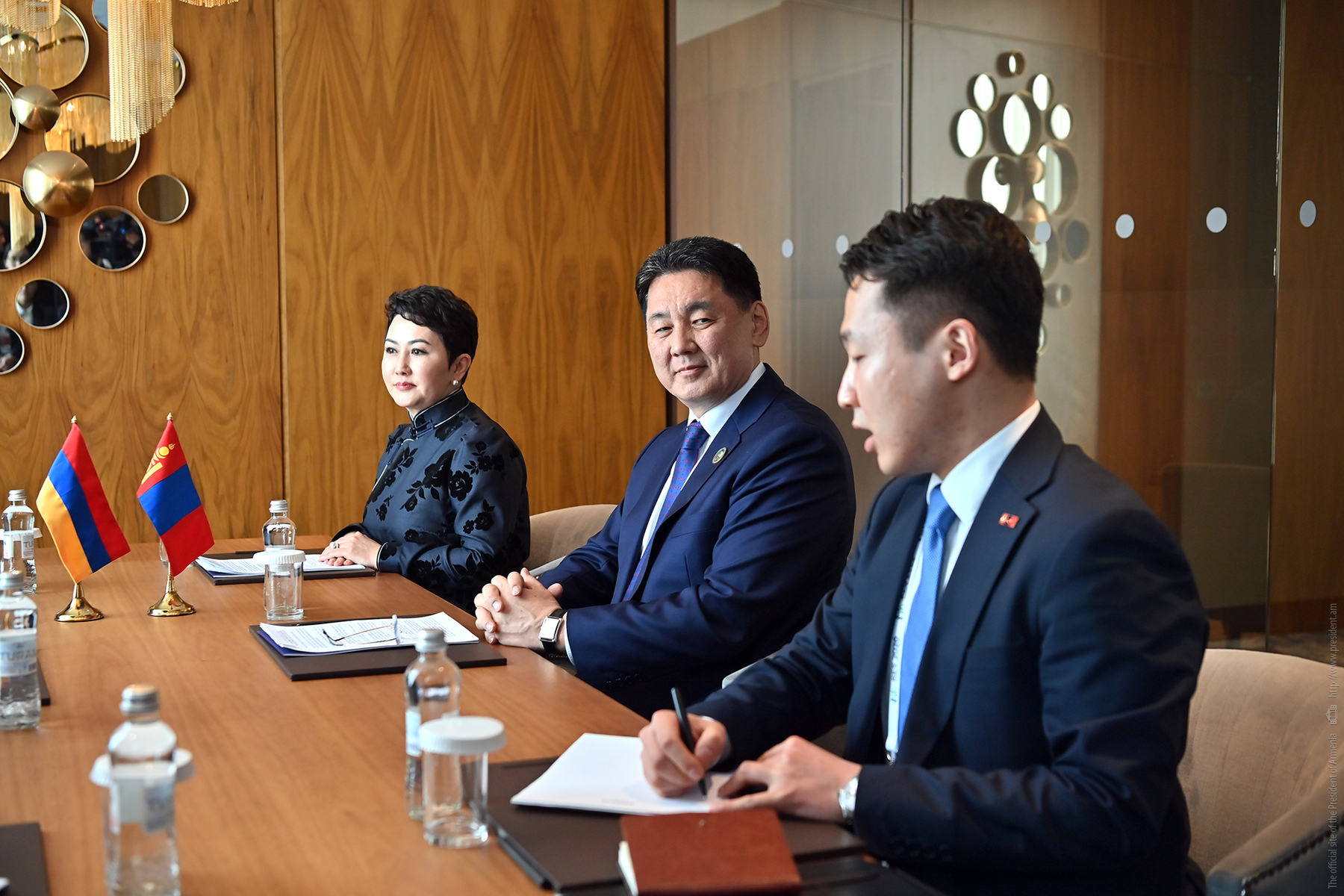The President of the Republic, Vahagn Khachaturyan, met with the President of Mongolia, Ukhnaagiin Khurelsukh, within the framework of his working visit to Kazakhstan.