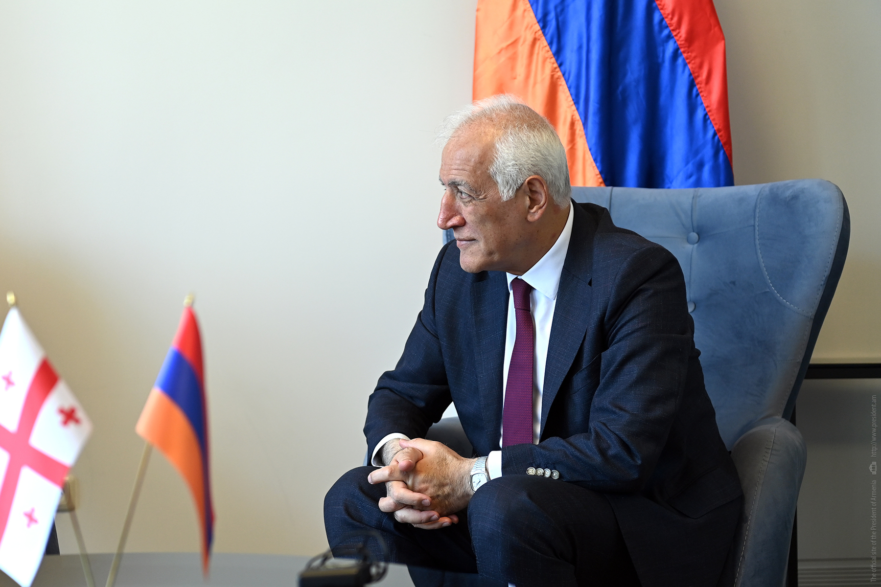 Le Président a chaleureusement félicité l'Ambassadeur extraordinaire et plénipotentiaire de Géorgie en Arménie, Giorge Sharvashidze, et a transmis ses meilleurs vœux au peuple ami de Géorgie. Le Président de la République a souhaité à la Géorgie succès et prospérité, soulignant l'importance de l'amitié et du partenariat traditionnels arméno-géorgiens.