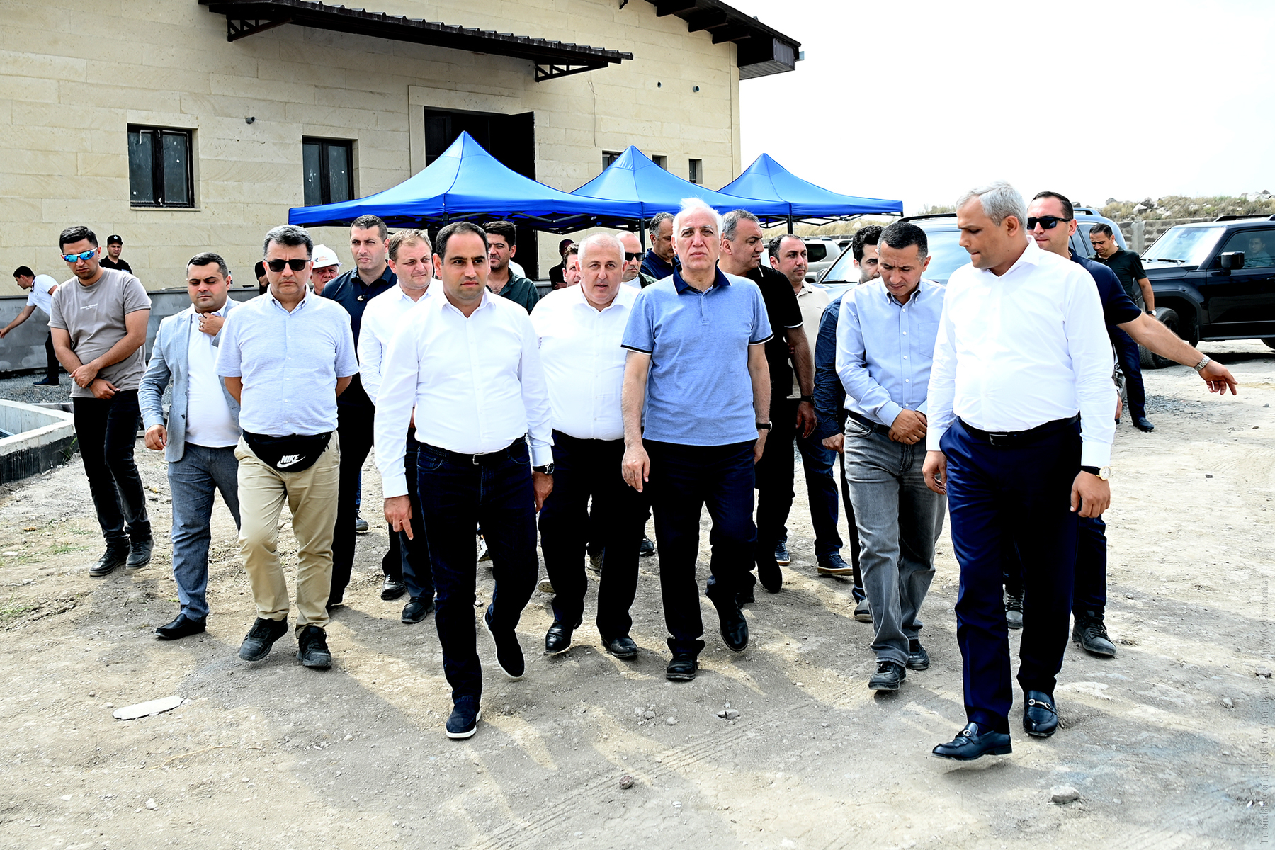 Sur place, le Président a observé les travaux réalisés et s'est renseigné sur le calendrier approximatif de mise en service de la sous-station et sur la portée globale du projet.