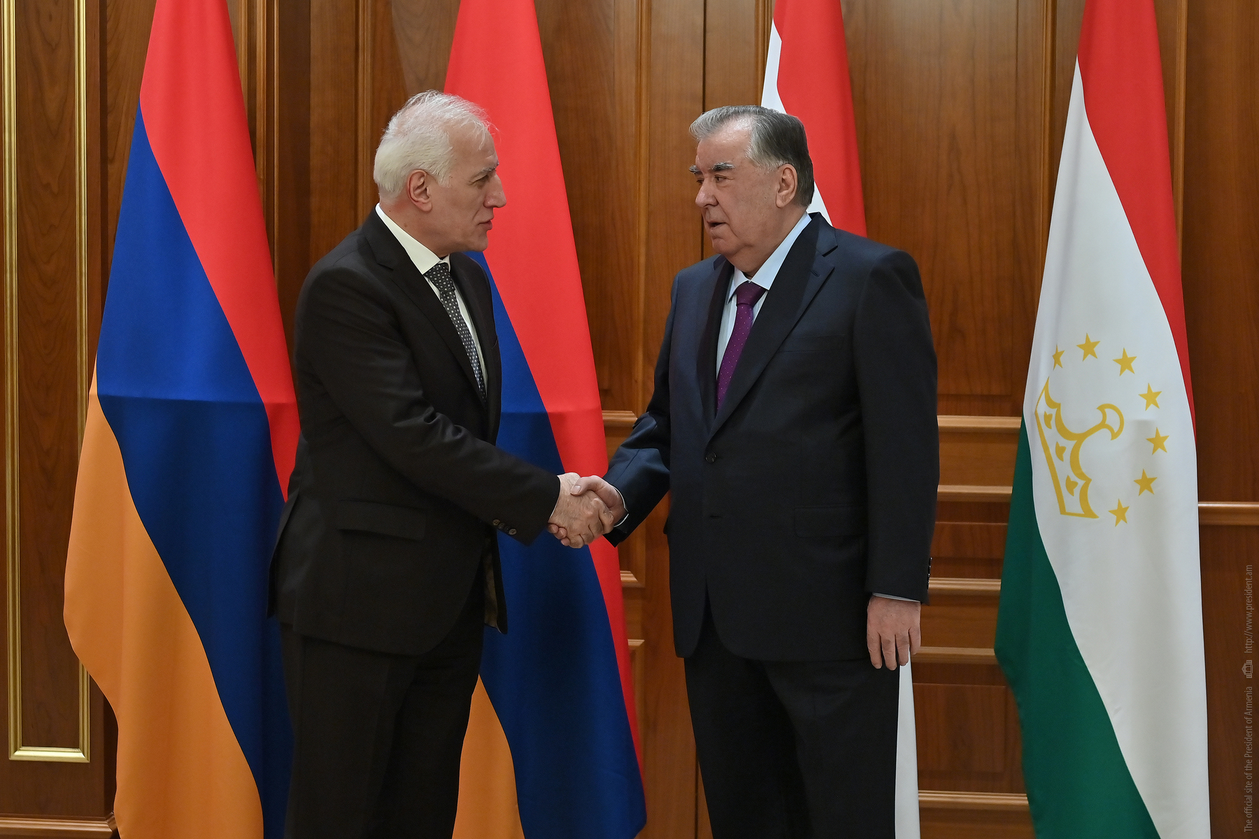 Le président de la République, Vahagn Khatchatourian, a rencontré le président du Tadjikistan, Emomali Rahmon, dans le cadre de sa visite de travail au Kazakhstan.