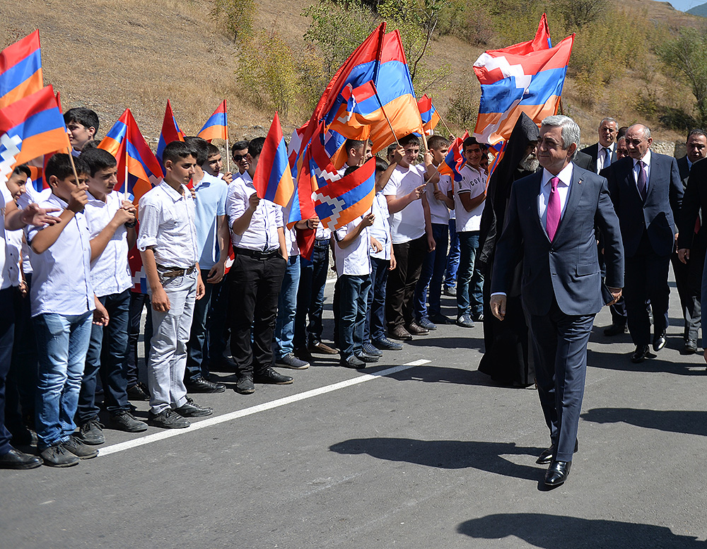 Աշխատանքային այցով Արցախի Հանրապետությունում գտնվող Նախագահ Սերժ Սարգսյանն Արցախի Նախագահ Բակո Սահակյանի հետ միասին ներկա է գտնվել Վարդենիս-Մարտակերտ ավտոճանապարհի բացման արարողությանը: Ճանապարհը կառուցվել է համայն հայության նվիրատվություններով՝ «Հայաստան» համահայկական հիմնադրամի կողմից 2013 և 2014 թվականների հեռուստամարաթոնների ընթացքում հավաքագրված միջոցների և Հայաստանի ու Արցախի կառավարությունների աջակցությամբ։