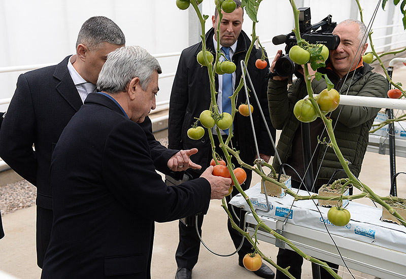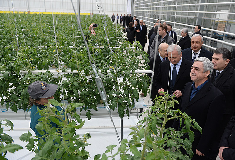 Այցի ընթացքում գյուղատնտեսության ոլորտի պատասխանատուները Նախագահին զեկուցել են նաև Հայաստանի Հանրապետությունում ջերմատնային տնտեսության ընդհանուր վիճակի և զարգացման ընթացքի վերաբերյալ: