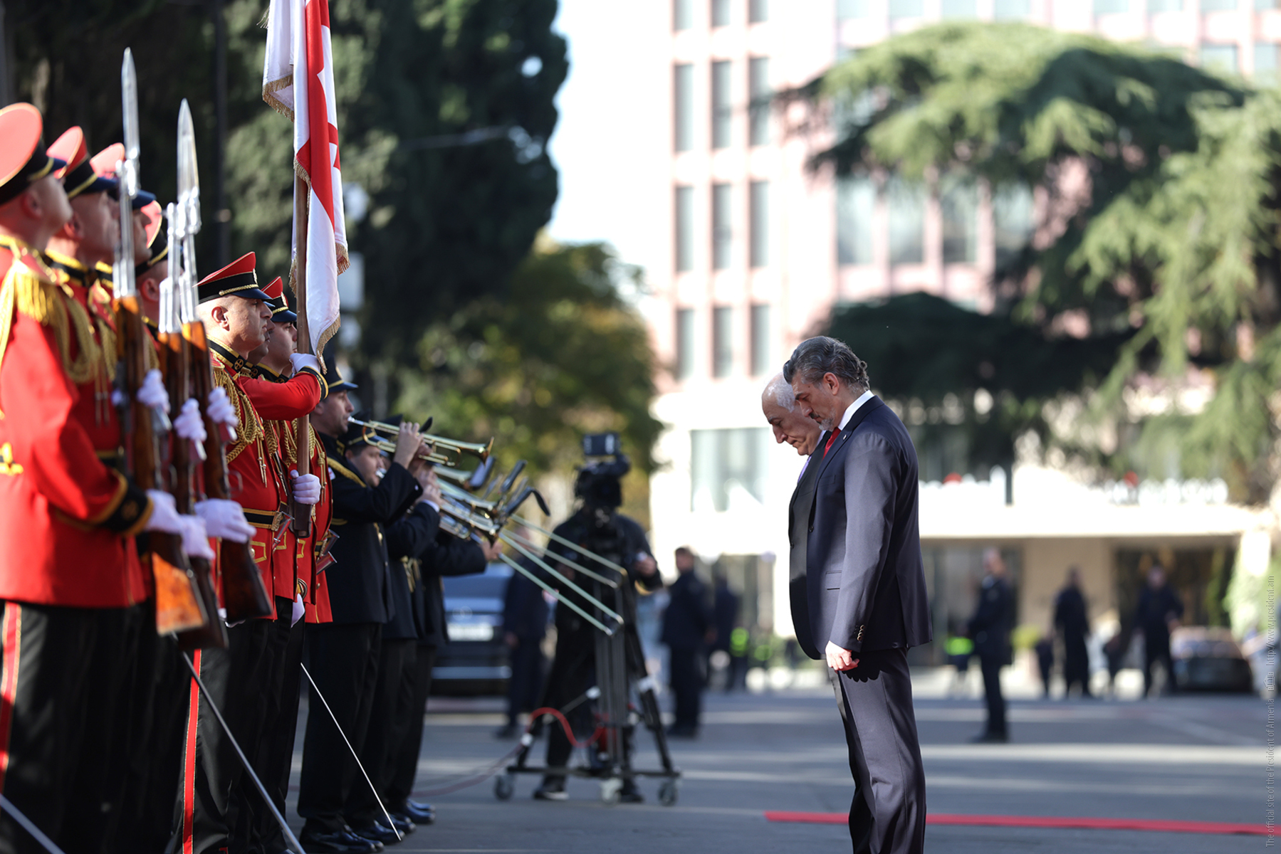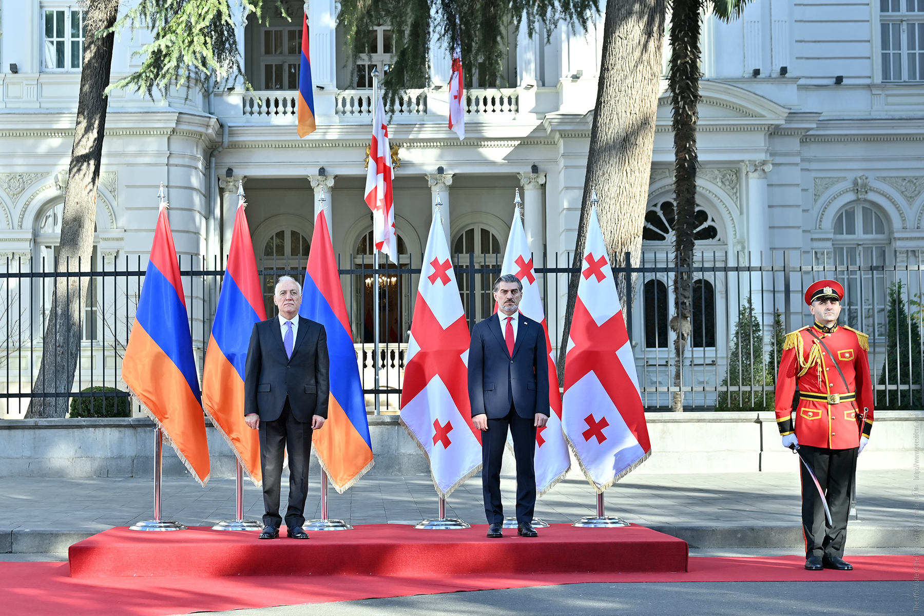 Կայացել է պաշտոնական այցով Թբիլիսի ժամանած նախագահ Վահագն Խաչատուրյանի դիմավորման արարողությունը