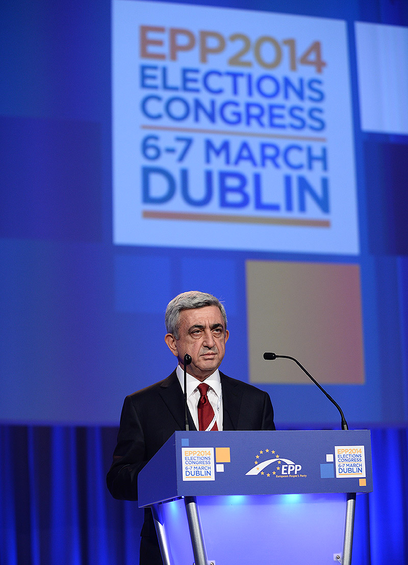 Находящийся с рабочим визитом в Ирландии Президент Серж Саргсян 6 марта в Дублине принял участие в пленарной сессии Европейской народной партии, на которой выступил с речью.