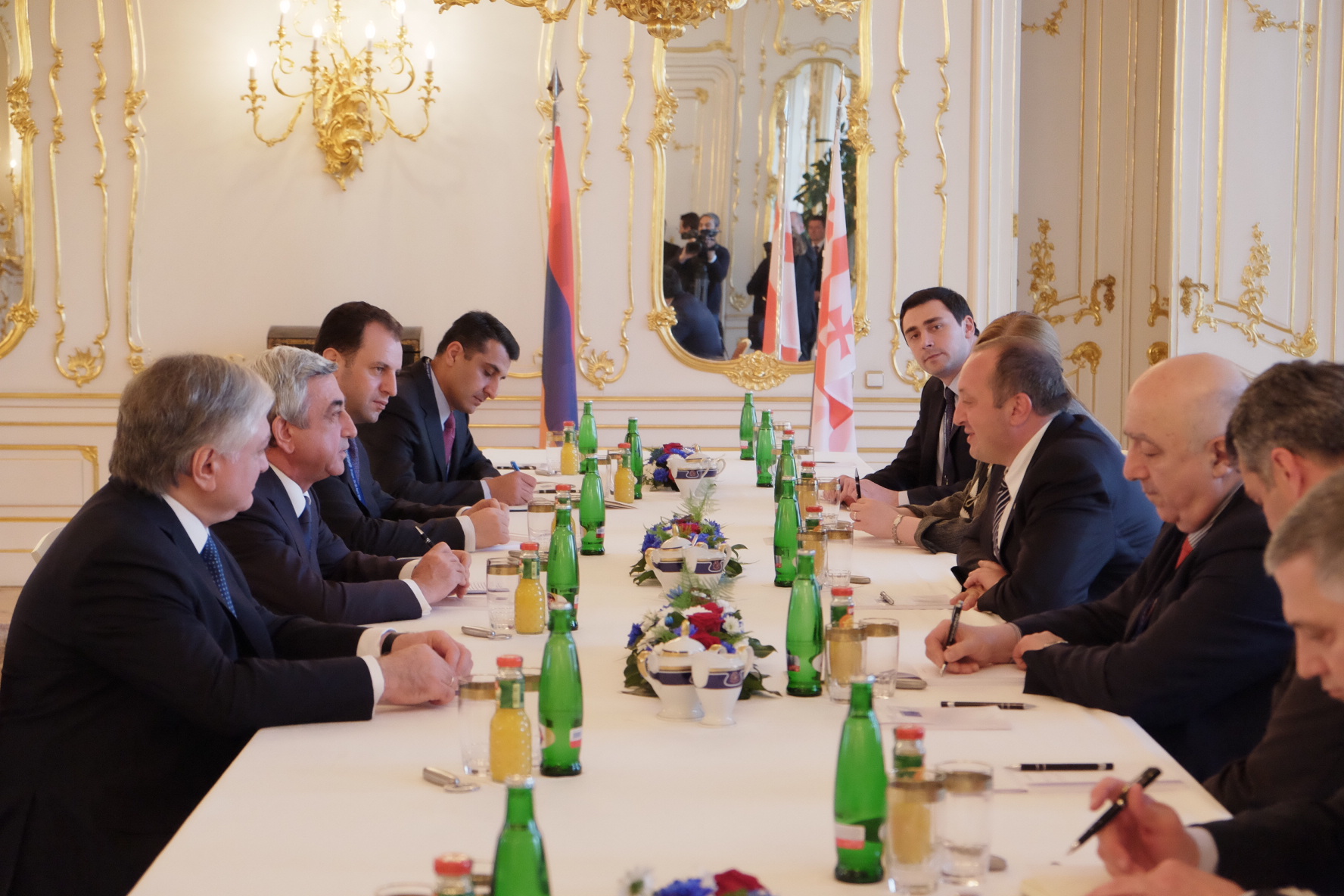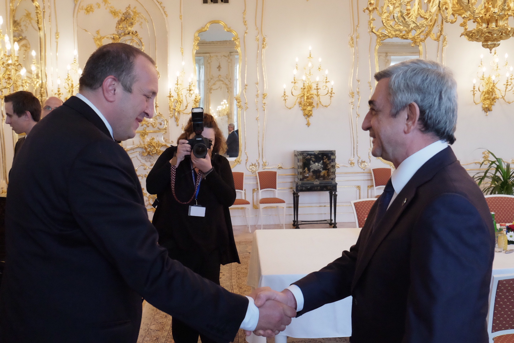 Находящийся с рабочим визитом в Чешской Республике с целью участия во встрече высокого уровня в честь 5-летия Восточного партнерства Президент Серж Саргсян 24 апреля встретился с Президентом Грузии Гиоргием Маргвелашвили.