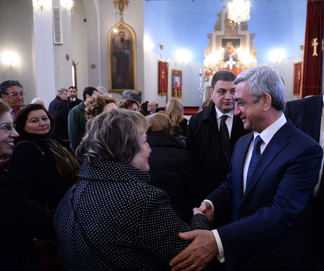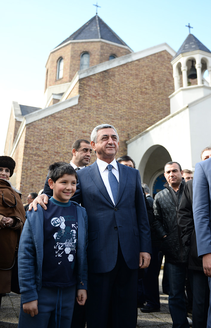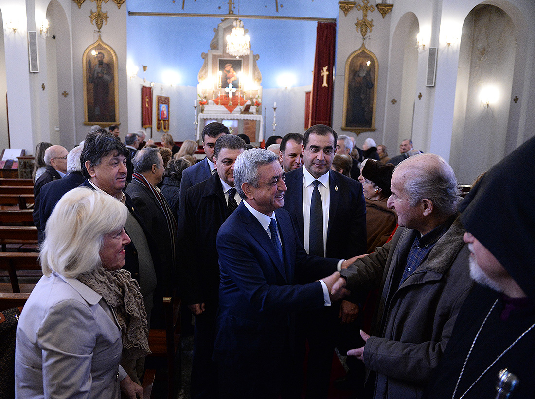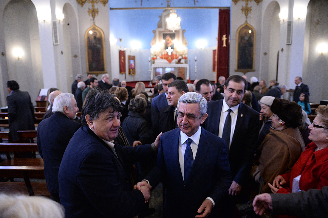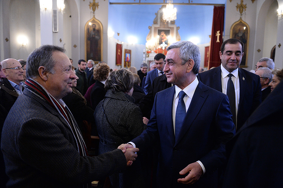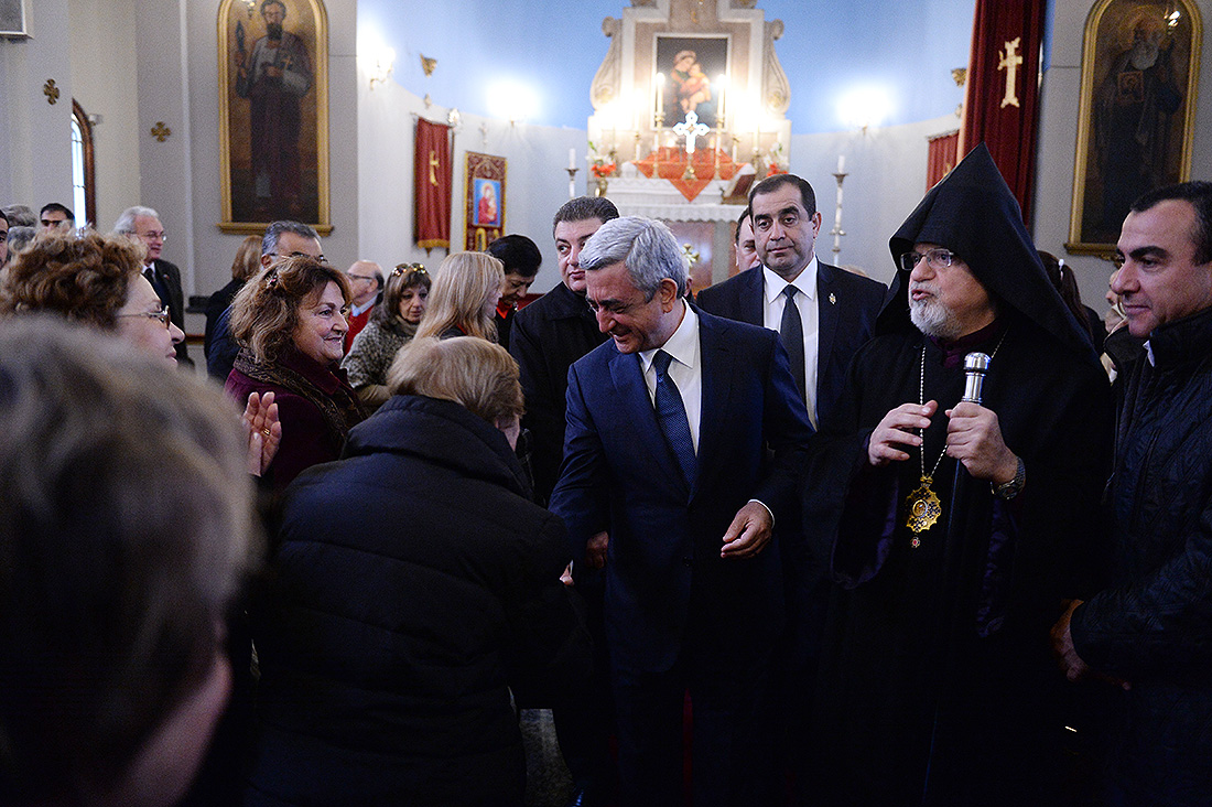 Находящийся с государственным визитом в Восточной Республике Уругвай Президент Серж Саргсян 10 июля посетил церковь Сурб Нерсес Шнорали. После приветственной речи предводителя Уругвайской епархии Армянской Апостольской Церкви архиепископа Акопа Глнджяна Серж Саргсян, обращаясь к собравшимся в церкви представителям армянской общины Уругвая, отметил, что рад и горд в далеком Уругвае увидеть такую влиятельную и организованную общину. «Я горжусь, что вы сумели вашей деятельностью не только создать наполненную армянским духом атмосферу, не только сказать вашим детям, что они армяне, будучи гражданами Уругвая, но и пользуетесь уважением и заслужили это уважение со стороны всех остальных граждан Уругвая. Мы сильны друг другом, мы могучи вместе, и мы только вместе можем достичь реализации наших национальных устремлений», - сказал Президент Серж Саргсян.