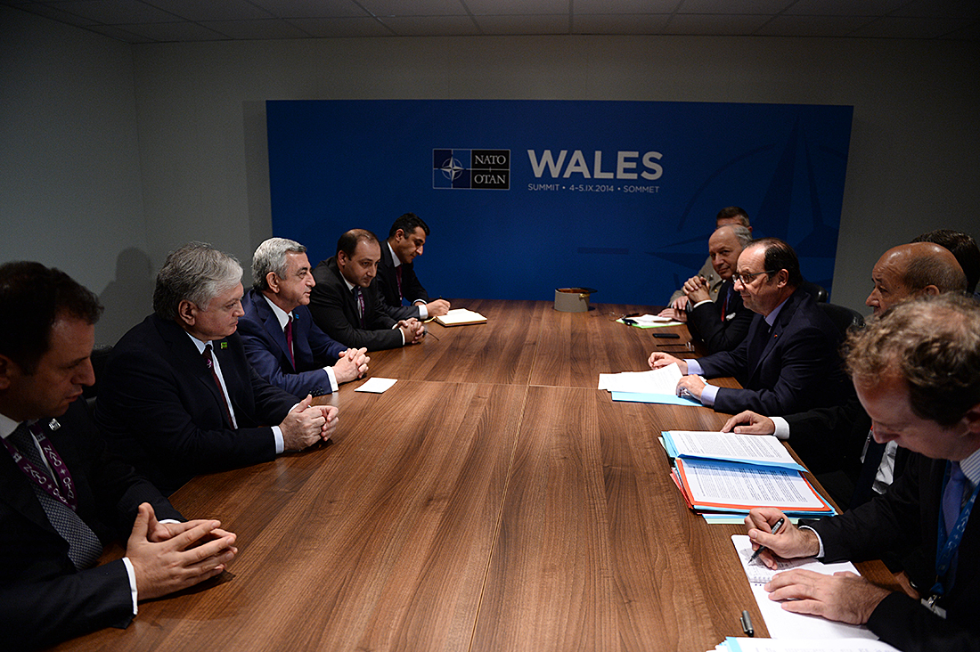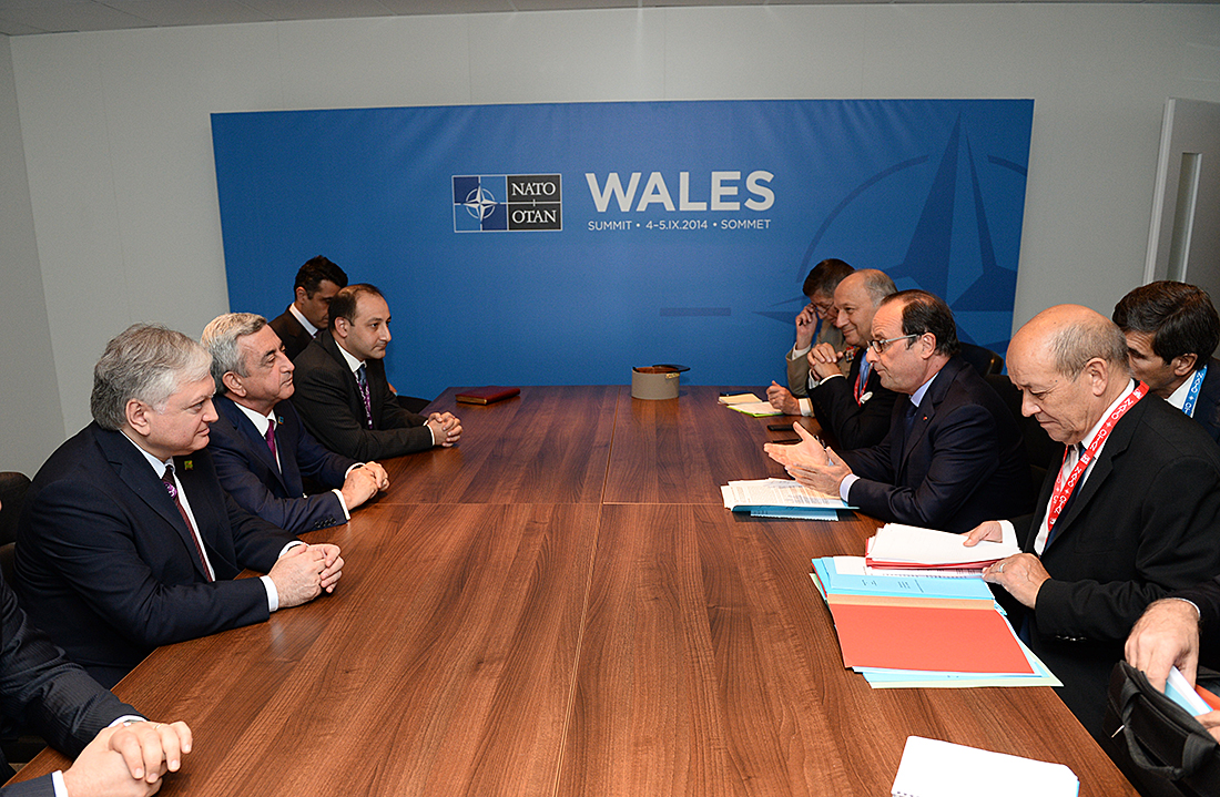 Находящийся с рабочим визитом в Соединенном Королевстве Великобритании и Северной Ирландии с целью участия во встрече глав государств и правительств стран – членов НАТО и партнеров, участвующих в миссии Международных сил содействия безопасности в Афганистане (ISAF), Президент Серж Саргсян 4 сентября в Ньюпорте встретился с Президентом Франции Франсуа Олландом.