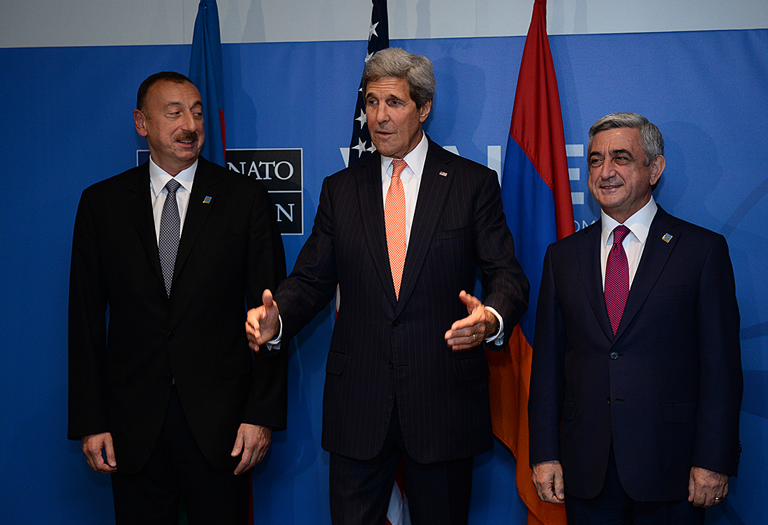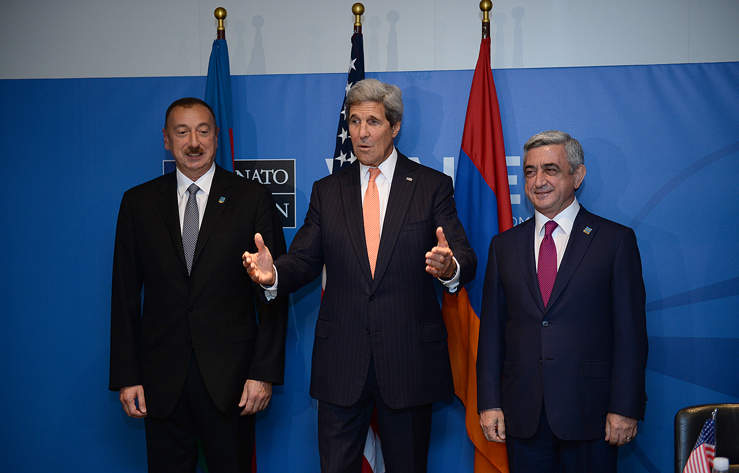 В Ньюпорте сегодня вечером состоялась трехсторонняя встреча Президента Армении Сержа Саргсяна, президента Азербайджана Ильхама Алиева и Госсекретаря США Джона Керри.