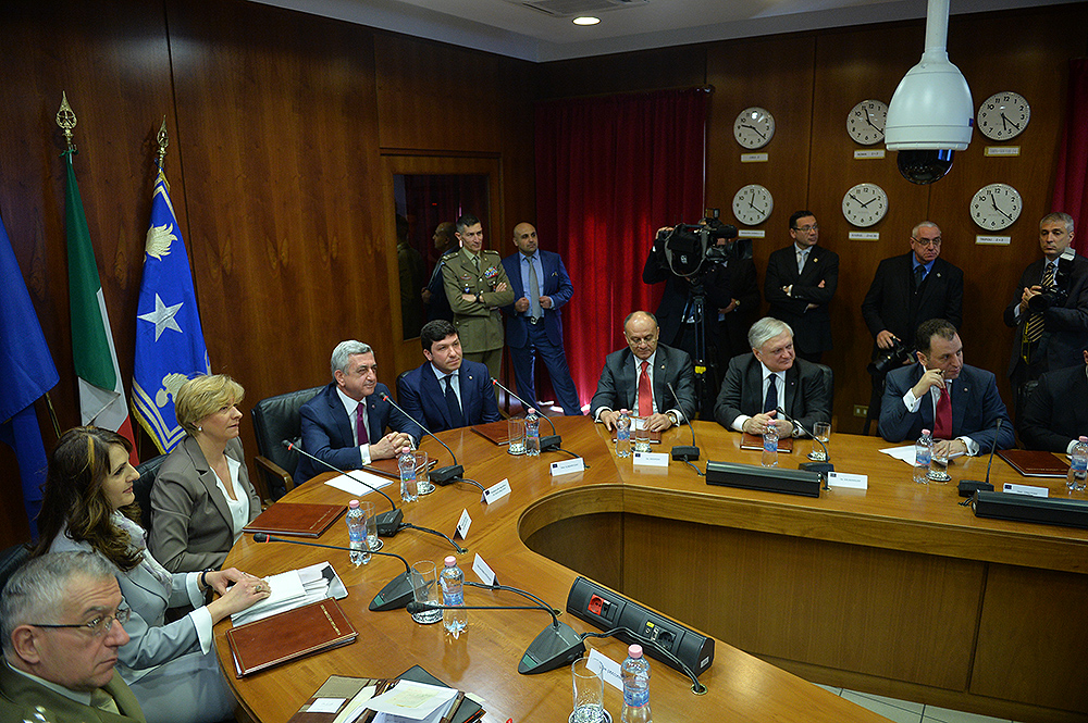 Президент РА и Министр обороны Италии отметили важность того, что в военной сфере армяно-итальянское сотрудничество не ограничивается двусторонним форматом и включает также сферу миротворчества: первая международная миссия, к которой присоединилась Армения еще в 2004 году – миротворческая миссия НАТО в Косово, за которой последовали миссии в Афганистане и Ираке.