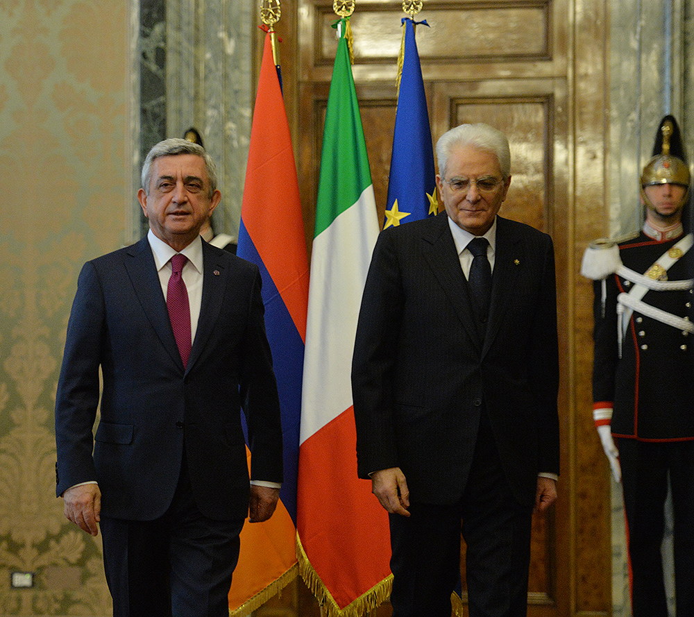 Серж Саргсян с удовлетворением говорил о состоявшейся с Президентом Италии господином Матареллой результативной встрече в атмосфере взаимопонимания, в ходе которой с обеих сторон была отмечена важность регулярного политического диалога, расширения имеющихся достижений в сферах экономического, культурного, научного сотрудничества, а также акцентировалась важность углубления межпарламентских связей.