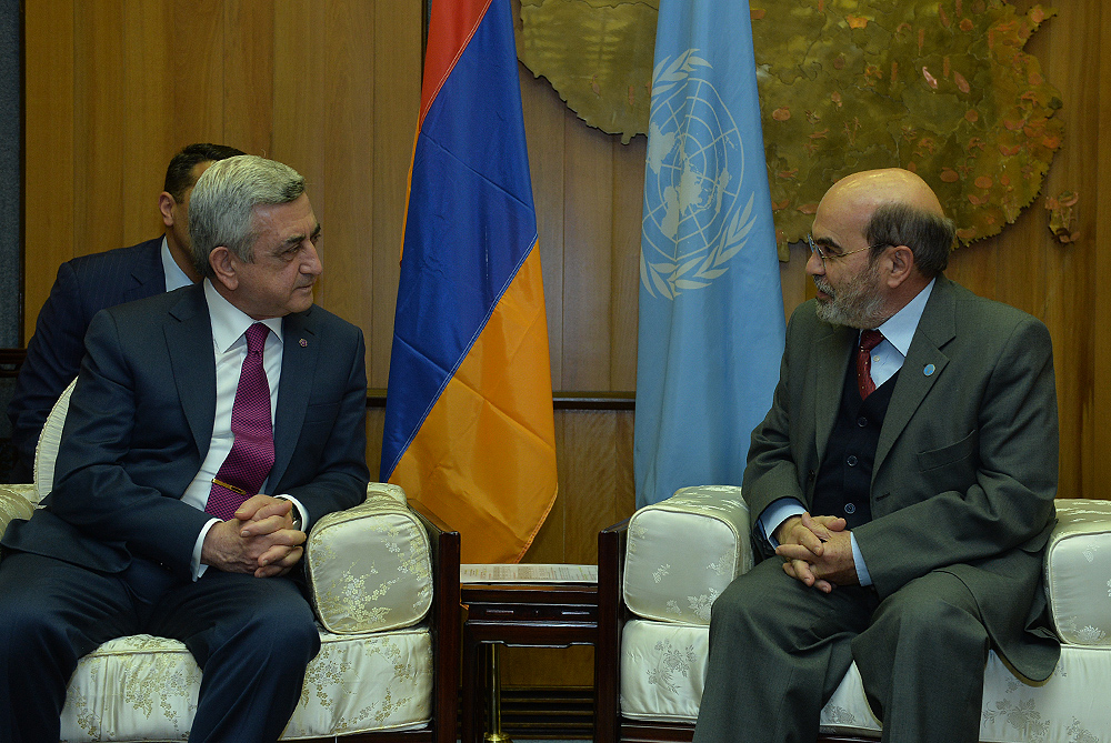 Президент Республики отметил, что армянская сторона готова поддержать все инициативы генерального директора Продовольственной и сельскохозяйственной организации ООН Жозе Грациано да Силвы, в том числе осуществляемые в организации реформы. По словам Президента, Армения последовательно работает с ФАО, внося свой вклад в дело обеспечения в мире продовольственной безопасности.