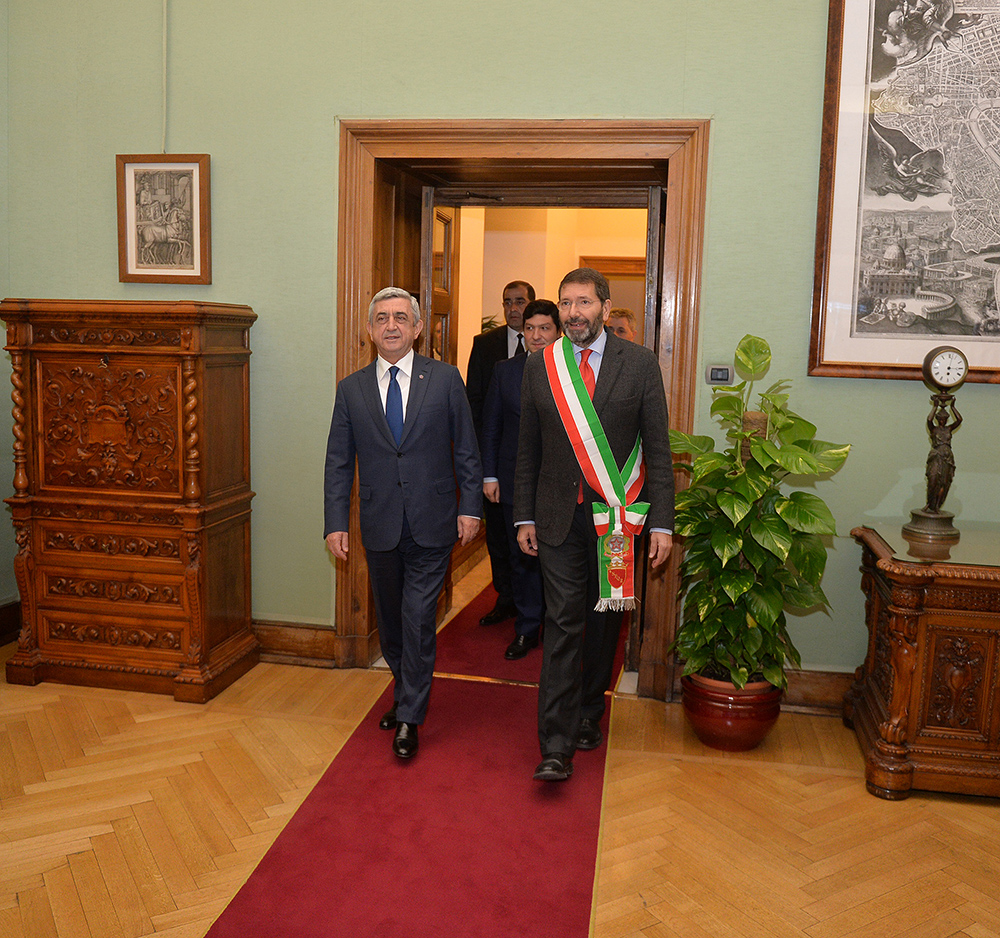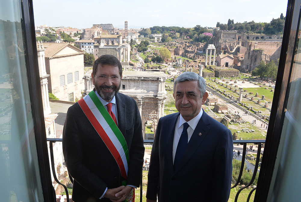 Серж Саргсян выразил уверенность, что Ереван и Рим имеют большой потенциал сотрудничества и выразил надежду, что в ближайшем будущем будут созданы правовые основы для дальнейшего развития и углубления связей между двумя столицами. Президент выразил надежду, что Мэр Рима внесет свой личный вклад в это дело. Мэра Иньяцо Марино Президент Республики пригласил посетить Ереван.