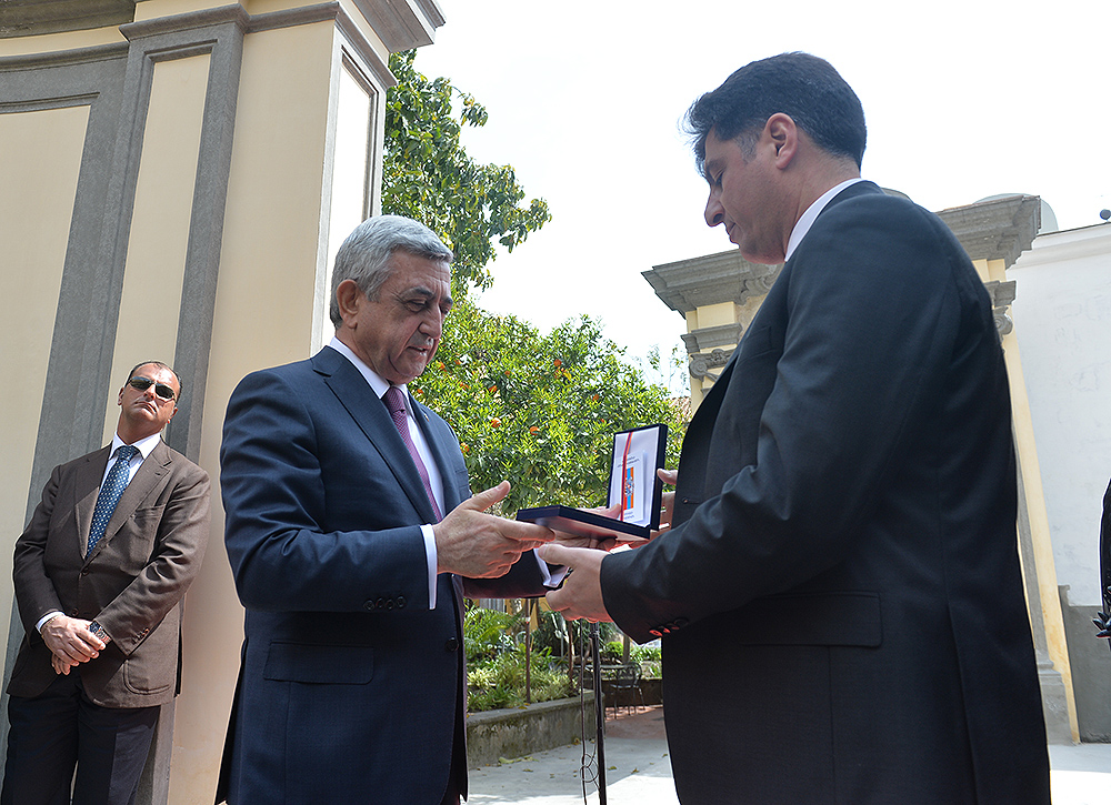 В процессе мероприятия Президент Серж Саргсян вручил группе представляющих общественную, политическую и экономическую сферы армянских и итальянских деятелей высокие государственные награды Республики Армения. Награды присуждены за значимый вклад, внесенный в дело признания Геноцида армян, укрепление двусторонних связей между Арменией и Святым Престолом, признание независимости Нагорно-Карабахской Республики, укрепление связей родина-диаспора, распространение духовных ценностей, укрепление армяно-итальянских культурных, дружественных связей, а также активную общественно-политическую деятельность на благо армянства, вклад в сферу экономики и в дело сохранения армянства.