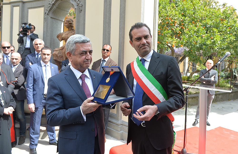 Президенту Республики был присужден орден города Неаполя, который Сержу Саргсяну вручил Мэр Луиджи де Маджистрис.