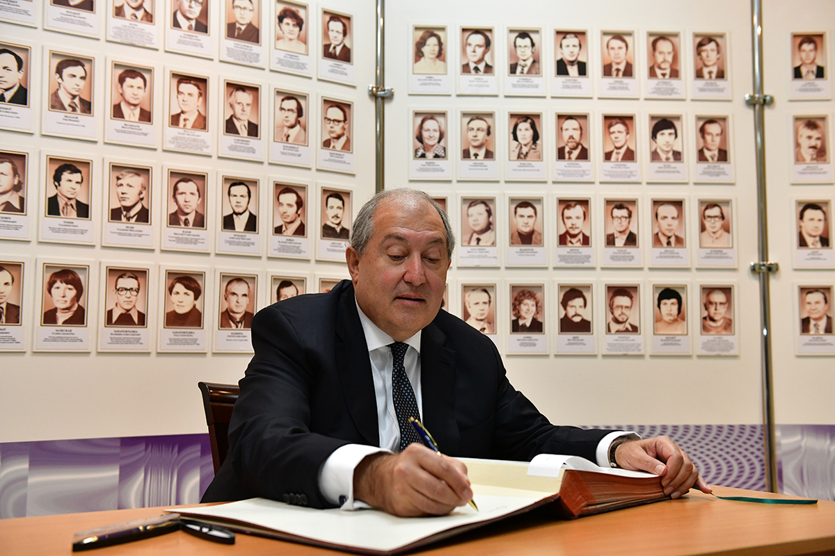 Находящийся с рабочим визитом в Республике Беларусь Президент Республики Армения Армен Саркисян 30 октября посетил Национальную Академию наук Беларуси. Армен Саркисян подчеркнул, что впервые посетил НАН Беларуси в молодом возрасте, в 1976 году, когда участвовал в работах международной конференции по физике. По словам Президента, дружба и сотрудничество между Академиями наук наших стран имеют громадную ценность.
