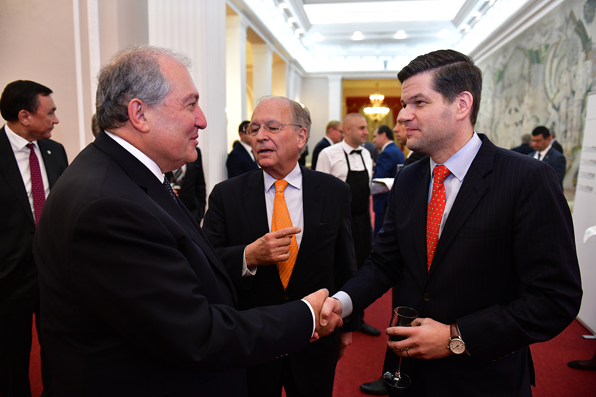 Президент Республики Армения Армен Саркисян, который участвует в Минске во встрече Особой группы Мюнхенской конференции по безопасности, встретился с Джеймсом Джонсом, который в прошлом занимал пост советника по вопросам безопасности в администрации 44-го Президента США Барака Обамы и был главнокомандующим объединённых вооружённых сил НАТО в Европе.