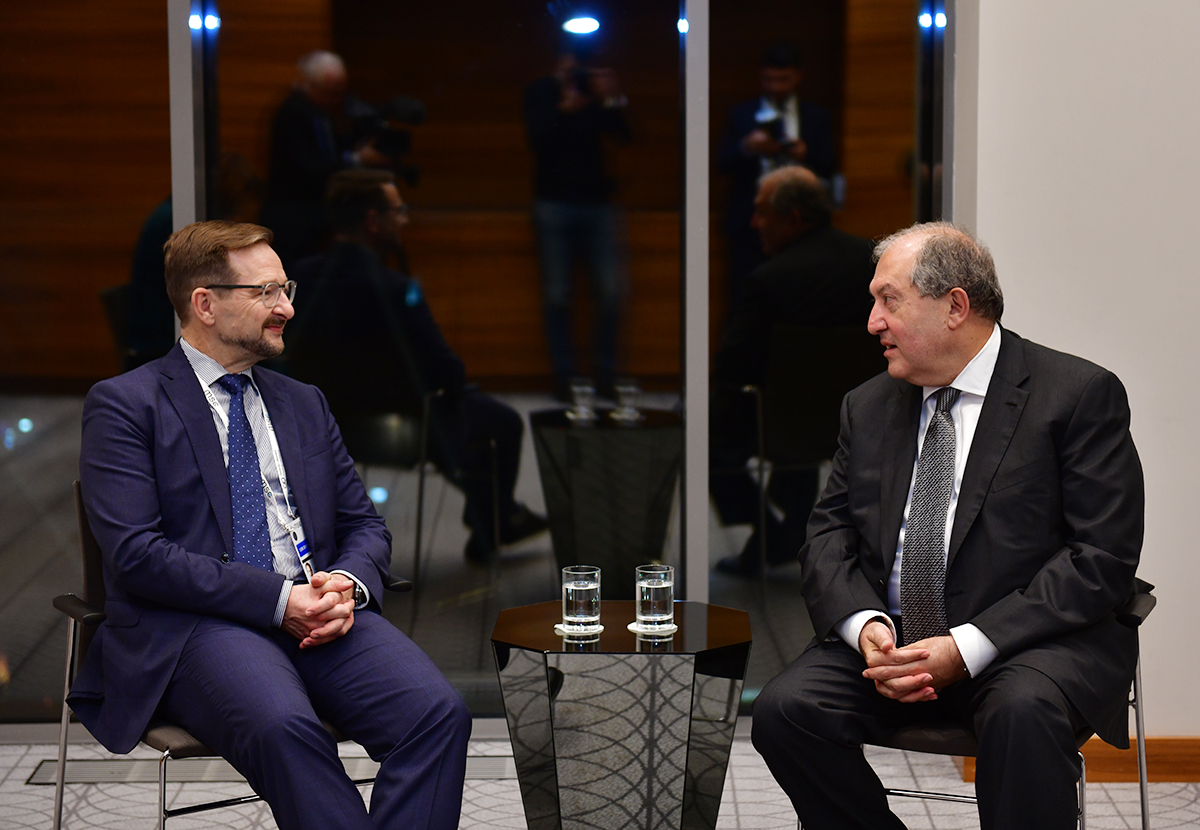 Находящийся в Республике Беларусь для участия во встрече Особой группы Мюнхенской конференции по безопасности Президент Республики Армения Армен Саркисян вечером 31 октября имел двустороннюю встречу с Генеральным секретарём Организации по безопасности и сотрудничеству в Европе (ОБСЕ) Томасом Гремингером.