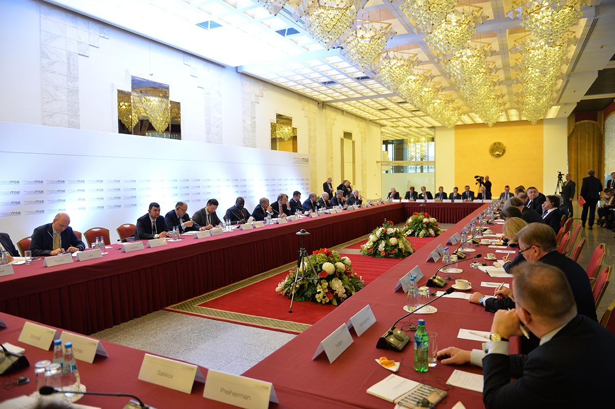 Круглый стол открыл Президент Республики Беларусь Александр Лукашенко, а модератором обсуждений был Председатель Мюнхенской конференции по безопасности Вольфганг Ишингер.