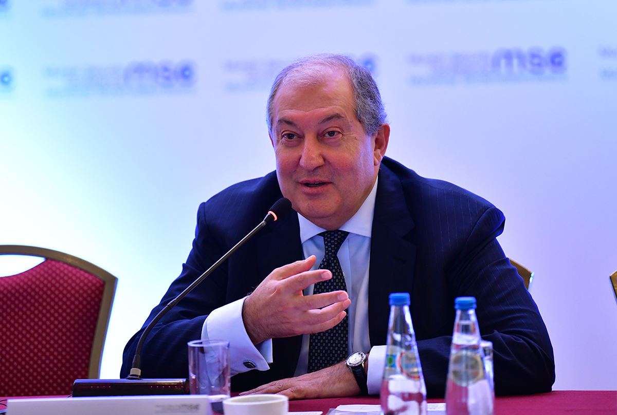 По словам Президента Армении, в новом мире должны быть слышимы голоса всех. «В 21-ом веке, когда мы сталкиваемся с многочисленными опасностями и рисками, малые, даже замороженные конфликты могут стать источником больших проблем. Они могут превратиться в региональные конфликты и выйти за пределы регионов. Мы сегодня являемся свидетелями этого, например, в Донбасе.