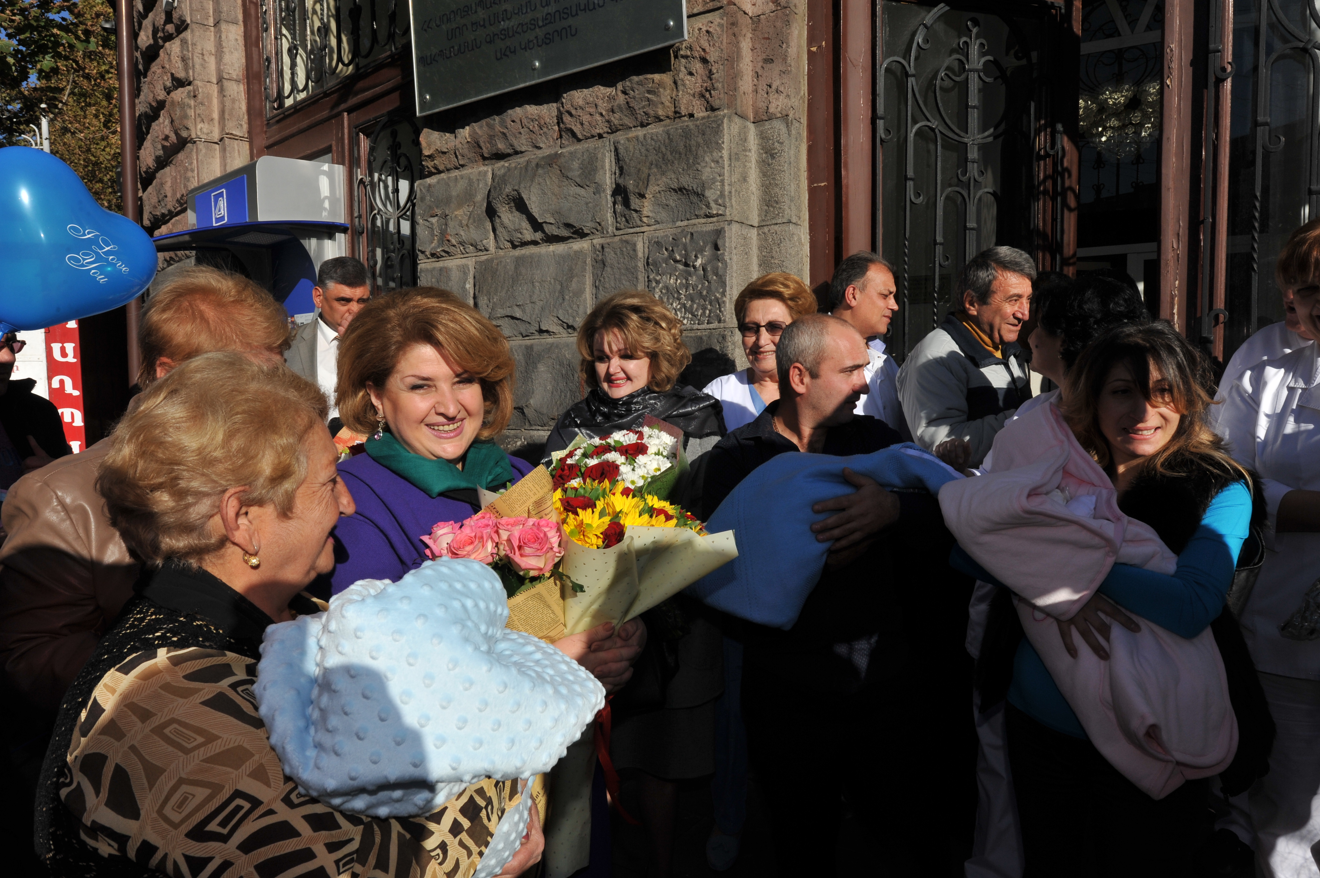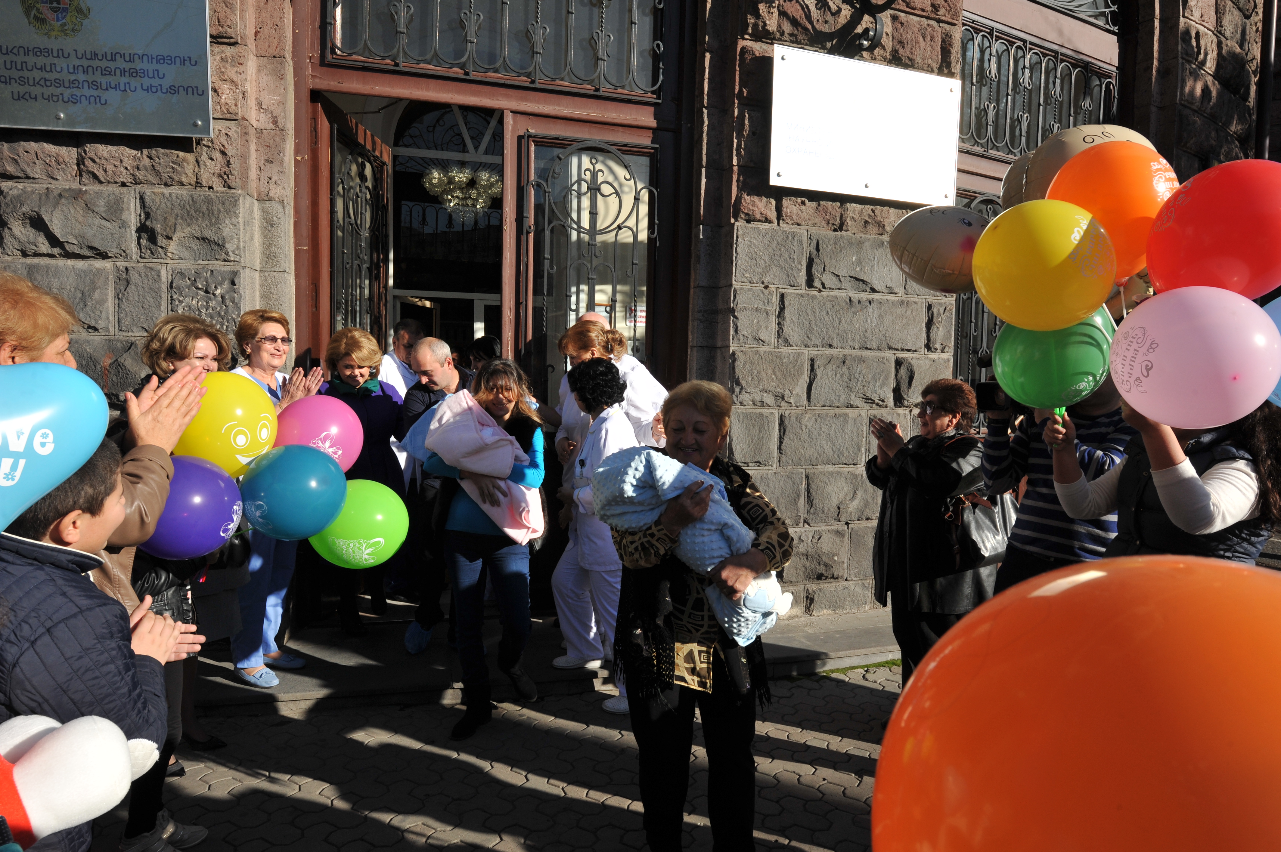 Первая леди Армении, почетный председатель Совета попечителей фонда репродуктивной медицины «Арагил» («Аист») Рита Саргсян 19 ноября в Научно-исследовательском центре охраны здоровья матери и ребенка навестила две тройни, родившиеся при содействии фонда репродуктивной медицины «Арагил». У проживающих в Ереване Гаспарянов и молодой семьи Симонянов из села Азох в Республике Арцах соответственно после 14 и 12 лет ожидания родились тройни. После долгих лет бесплодия Нарине и Сукиас Гаспаряны заимели двух сыновей и дочь (Анаит, Гагик, Вагаршак), а у Симонянов появились на свет две дочери и сын (Анна, Яна, Мгер). Поскольку малыши родились в год 100-летней годовщины Геноцида армян, Рита Саргсян передала им символичные золотые незабудки, отметив, что благодаря «самому доброму аисту» республики уже появились на свет 139 детей: 65 девочек, 74 мальчика. Рита Саргсян навестила также находящуюся под наблюдением врачей Аревик Геворкян, которая после 14-летней борьбы с бесплодием, опять же при содействии благотворительного фонда «Арагил», ожидает рождения близнецов.