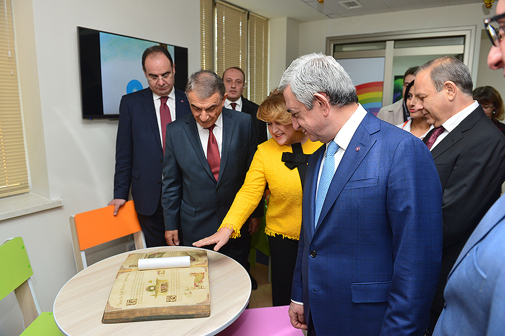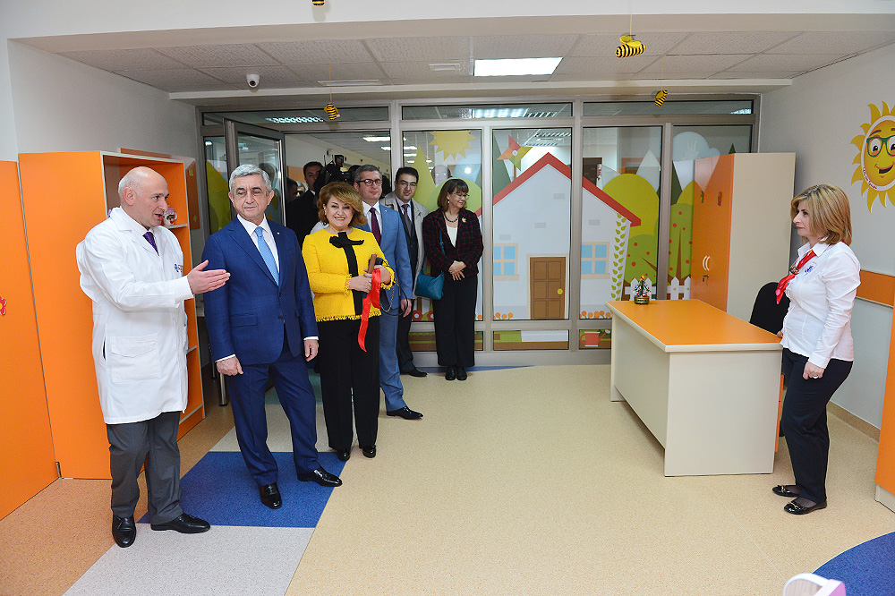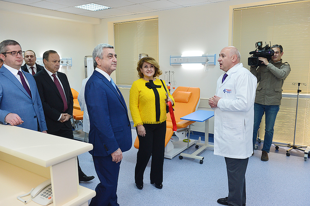 Первая леди РА Рита Саргсян присутствовала на церемонии открытия модернизированного центра гематологии им. проф. Р.Еоляна . Учитывая исключительное значение центра, в особенности, в деле лечения рака крови среди детей, программа реализована благодаря приверженности и усилиям, вложенным благотворительным фондом "Подари жизнь" и почётным председателем его совета попечителей госпожой Ритой Саргсян.