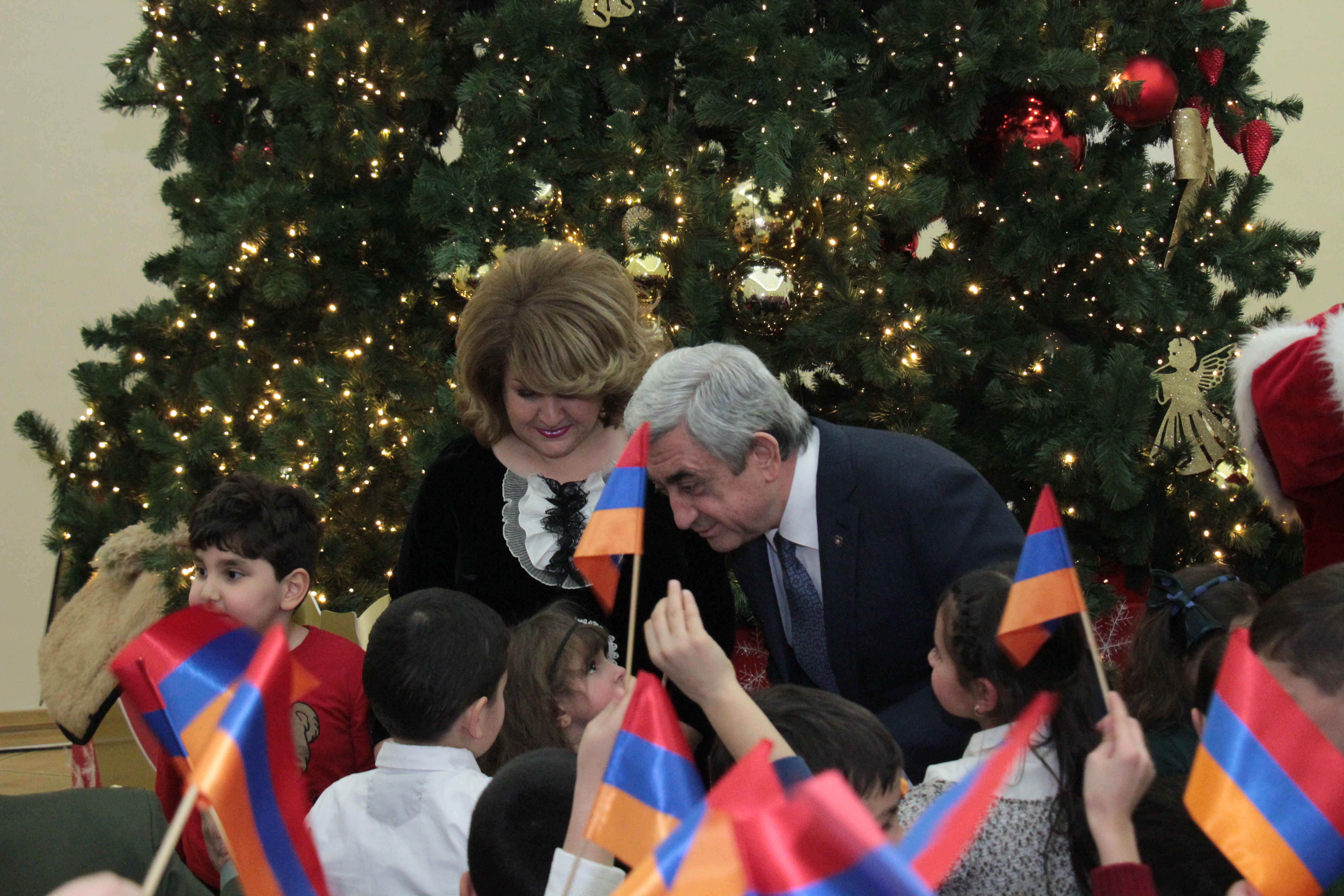 Президент Серж Саргсян и госпожа Рита Саргсян в связи с наступающими праздниками в резиденции Президента приняли многочисленных детей