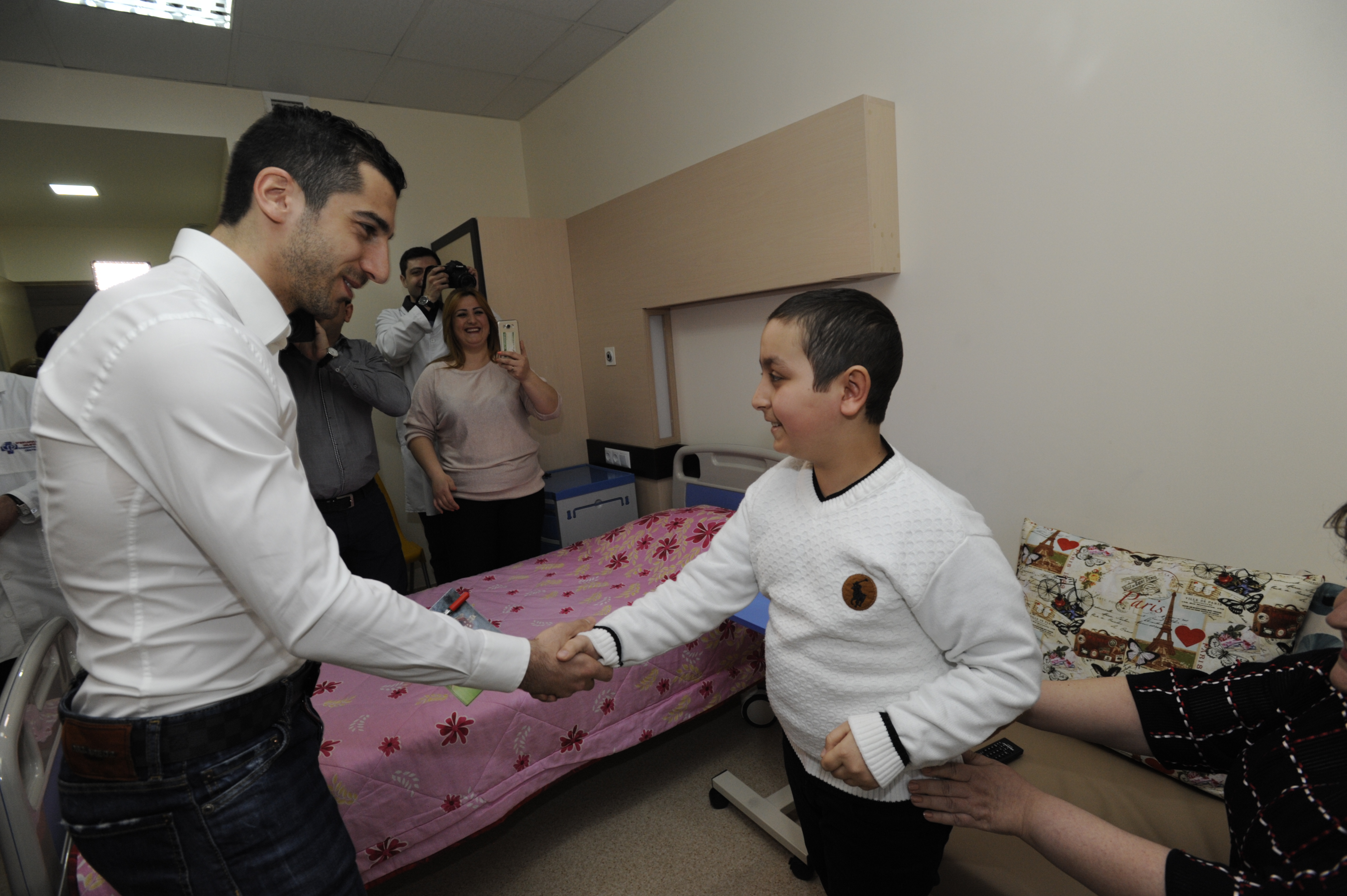 По приглашению Первой леди РА Риты Саргсян 23 марта с.г. футболист национальной сборной Армении Генрих Мхитарян посетил модернизированный Центр гематологии имени проф. Р.Йоляна.