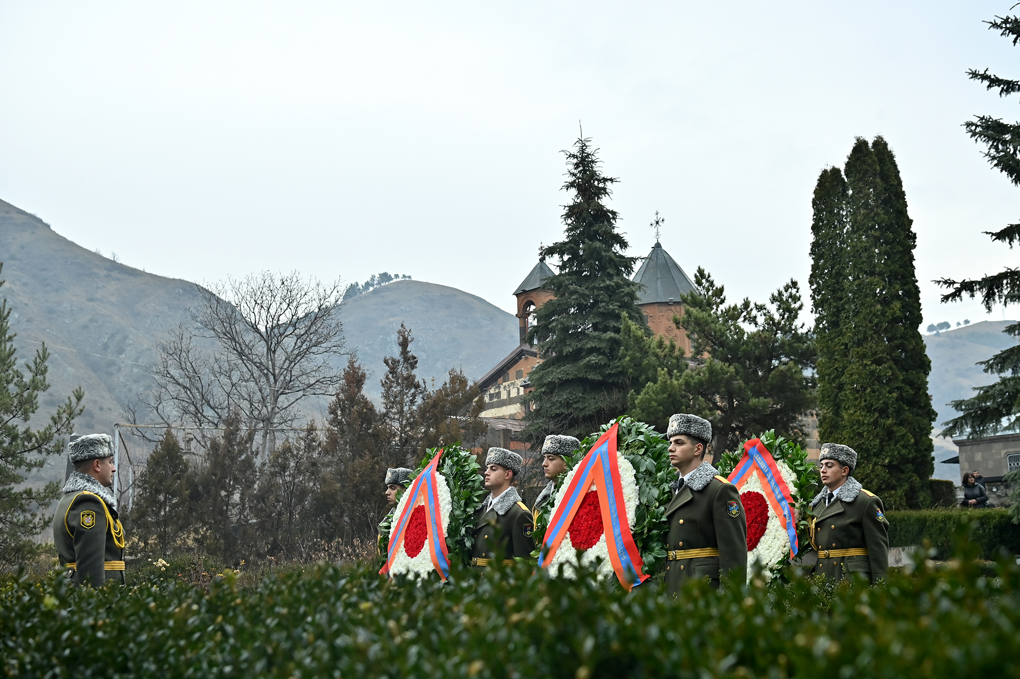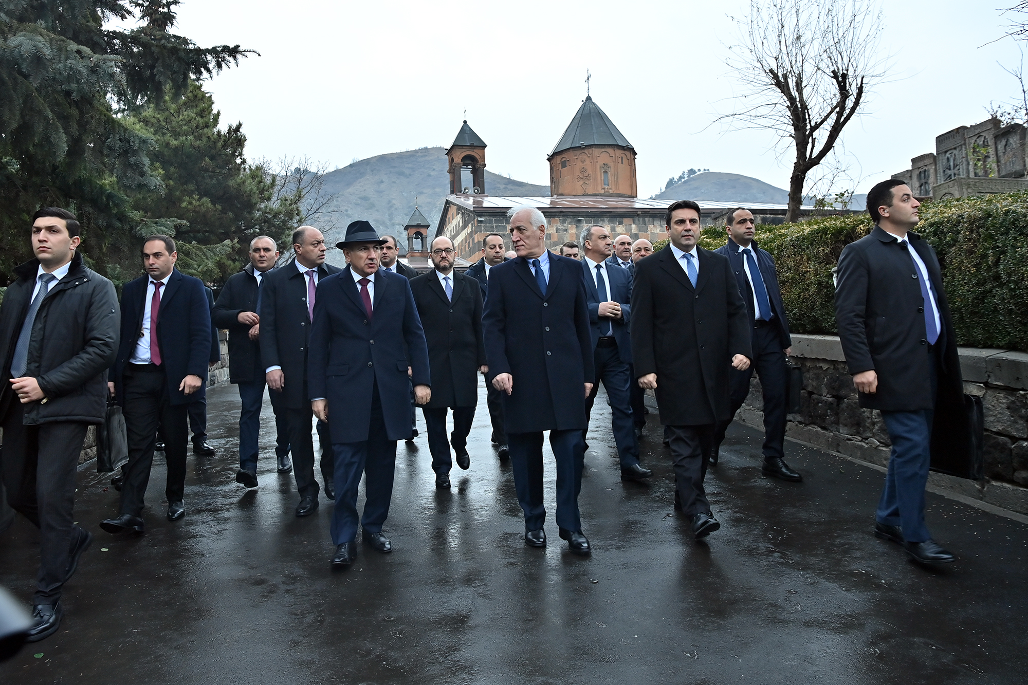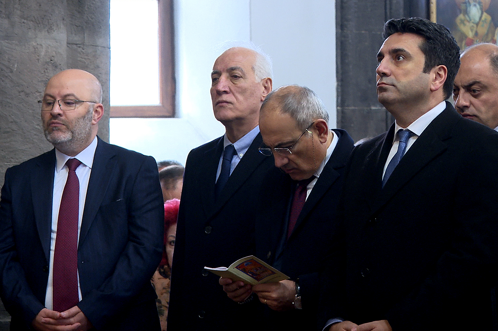Затем президент вместе с премьер-министром и спикером Национального собрания приняли участие в поминальной службе по жертвам землетрясения в церкви Семь Ран в Гюмри.