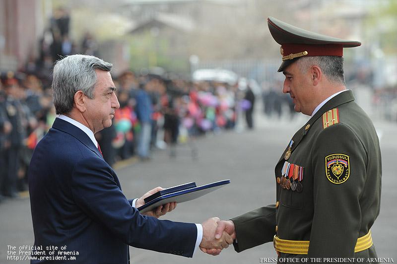 For the last two decades you have been diligently performing your duties. That period of time was very important for the establishment and strengthening of the Armenian Police. In the struggle for Artsakh’s independence, as well as in the fight against organized crime many of our policemen have displayed outstanding professional qualities and heroic stance. Some perished in that struggle but memories of them and their images – the image of a just and strong policeman – will continue to serve a standard, a guide for your work and your service.