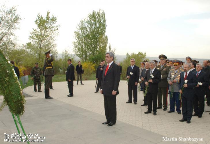 On April 9, President Serzh Sargsyan accompanied by other top officials, visited Yerablur to honor the memory of heroes who sacrificed their lives for their Fatherland's freedom.