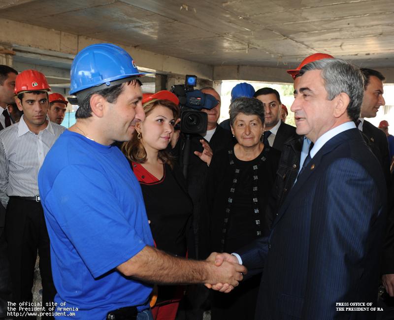 President Serzh Sargsyan visited the site of the apartment which is being built in the framework of the Housing Assistance for Young University Graduates program