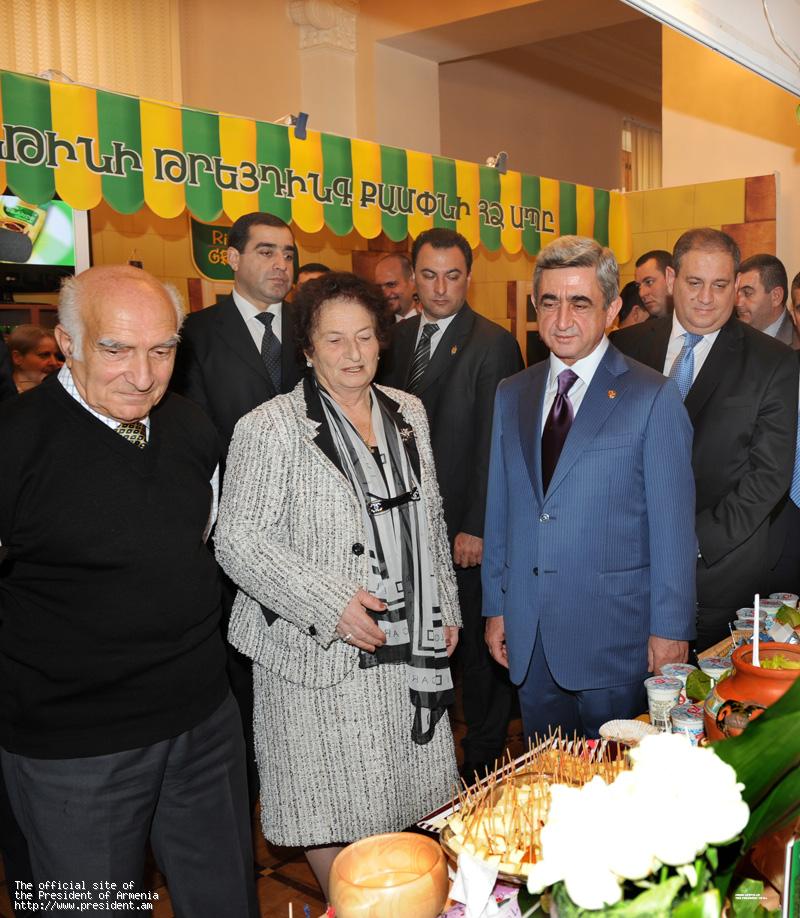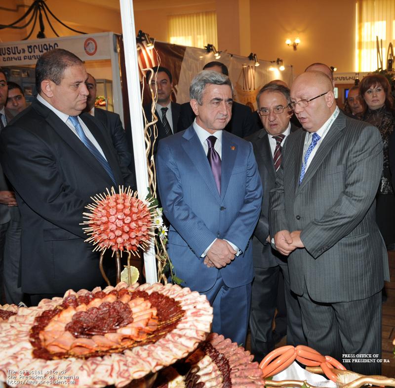 The President of Armenia toured the exhibition halls, examined and tested some of the produce of over 65 food producing local and foreign companies.
