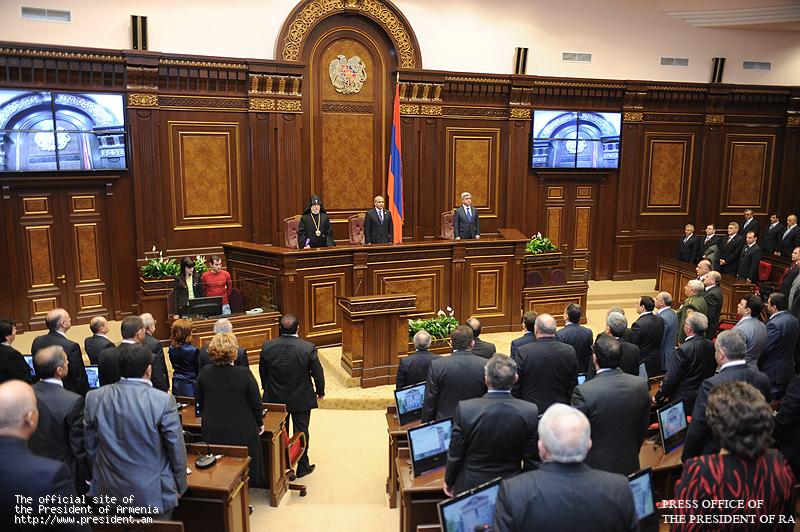 With this regard, I would like to note with satisfaction that in the direst times, the Parliament of Armenia shared with the executive the burden of pulling the country out of the financial and economic crisis, assumed and carried its share of responsibility. In fact, all main anti-crisis steps initiated by the government were supported by the Parliament which allowed to implement the programs in the required scope and in due time. During the crisis, which shocked the world and brought to knees economies ten times more powerful than ours, thanks to coherent and synchronized steps of our executive and legislative bodies, salaries and pensions were not cut or delayed even for a second, the pace of raising combat readiness of our army didn’t slow down.