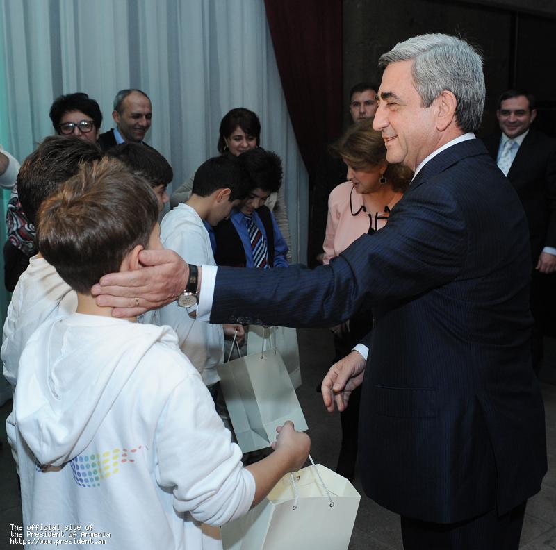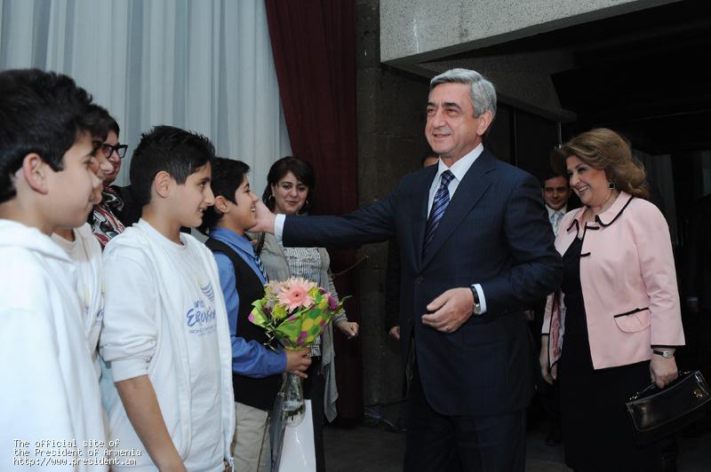 At the festive night at the Komitas Chamber Music Hall, President Serzh Sargsyan met with Vladimir Arzumanian who won the Junior Evrovision-2010 and his dancing group.