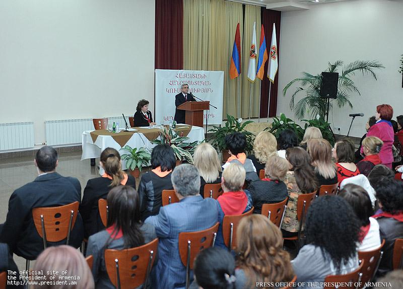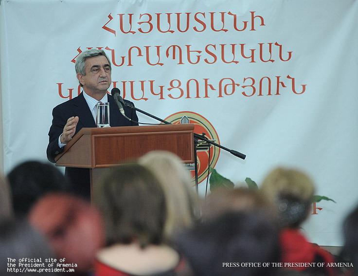 “We are a conservative party and in our system of values family and children are certainly are among the most significant components; however neither I, nor the leadership of the Party would ever suggest that active life of the female-members of the RPA or active life of the Armenian women in general should be limited to building a strong, good family, bringing up children, and creation of warm family atmosphere. No, definitely not. We have always maintained the necessity of women’s active involvement. It would be an unjustified luxury for us to attempt to curb women’s potential. I have said on many occasions and will repeat that we have always been endorsing the female members of the Party but still have much to do. Undoubtedly, women’s participation on the mid-level is pretty impressive. But all women, including members of the Republican Party and the entire state structure must be confident that their good performance, good work result in professional advancement. This is very important. And we already see in our ranks very active individuals, including women,” the President of Armenia said.