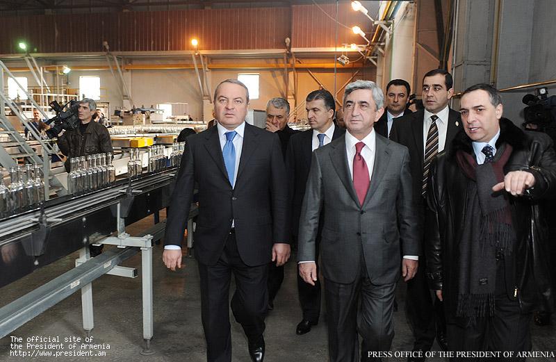 Today, President Serzh Sargsyan visited the Glass World Company, a glass container producing firm in Bjureghavan. The President of Armenia toured the plant, familiarized with its future plans related to the establishment of new production, investment and development programs.