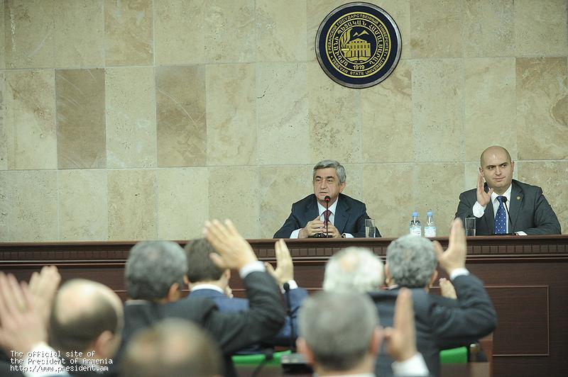 President Serzh Sargsyan participated at the sitting of the Yerevan State University Council