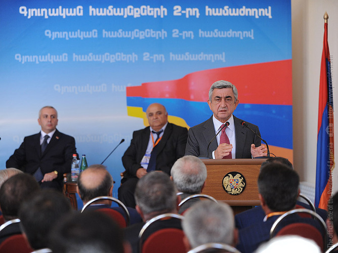 The Conference was attended by the heads of the rural communities from all marzes of the Republic. The Conference was convened to discuss the current issues present in the system of local self-governance of the rural communities, to share experience, and to achieve sustainable development of the rural communities through the exchange if information on the policies and programs which are currently being implemented. The President saluted the participants of the event and wished the Conference fruitful works.