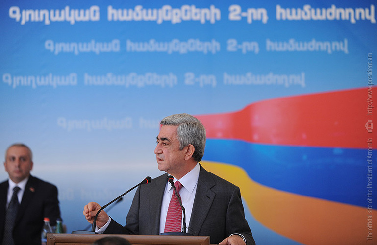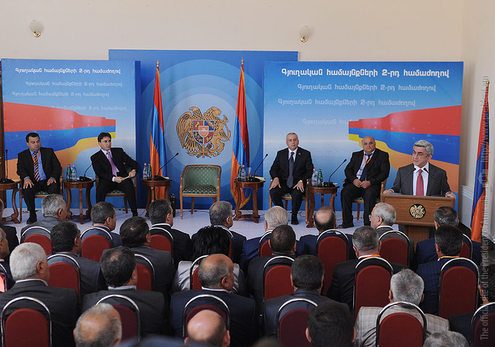 That’s what I wanted to tell you. Naturally, I could have given other nuances to my brief speech, could have spoken, for instance, about great results we have achieved, and could have brought nice examples. We have brilliant examples of the people dedicated to their country, to their job, who do their best to justify people’s confidence. However I believe that it’s not our style. Everything we have done cannot be taken away from us and in many cases has even been forgotten. We should speak about problems which hinder having a better community, a better town or a region and eventually a better state. And such problems are plenty. And the more we talk about the problems, the more visible will become the way to solve them, and the more people will trust. If there is no trust, neither of us can live contentedly, can not lead a hundred, a thousand or a ten thousand strong community. And I repeat that to lead means to serve the idea. And I am confident that at least the majority of the people present in this hall serve the idea. Thank you and I wish that every one of you, we all overcome all the difficulties with honor,” President Serzh Sargsyan said.