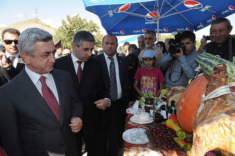 After participating at the winding-up plenary session of the 2nd Conference of the Rural Communities, the President visited Areni community and attended the traditional Fruit Fest and Wine Fest.