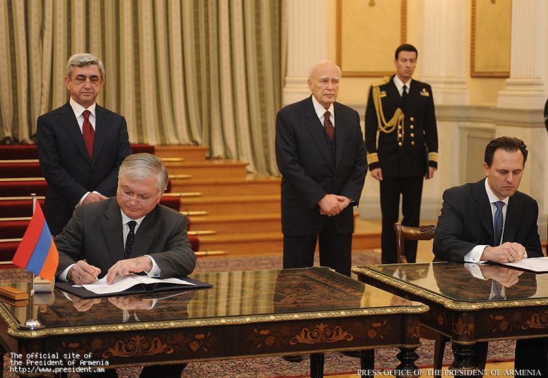 In the framework of the Presidential visit to Greece there also took place a document signing ceremony, aimed at fostering cooperation and strengthening ties in a number of areas. In particular, signed were the “Agreement between the Ministry of Defense of the Republic of Armenia and Ministry of National Defense of the Republic of Greece on military cooperation”, the “Program of cooperation between the Government of the RA and the Government of the RoG in the areas of education, science and culture for 2011-2013”, the “Memorandum of Understanding between the Ministry of Culture of the RA and the Ministry of Culture and Tourism of the RoG on organization before year 2012 of the Days of the Armenian Culture in the Republic of Greece and the Days of Greek Culture in the Republic of Armenia.”