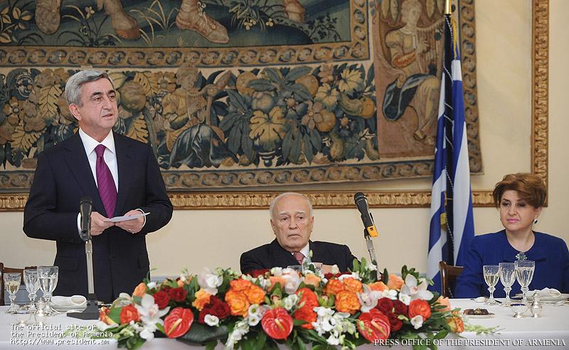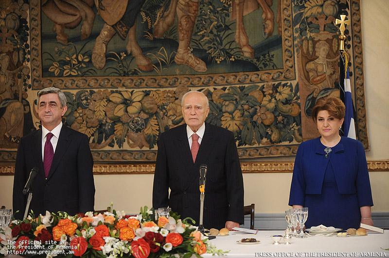 In the evening of January 18 the President of the Hellenic Republic Karolos Papoulias hosted a state dinner in honor of the President of Armenia Serzh Sargsyan and Mrs. Rita Sargsyan.
