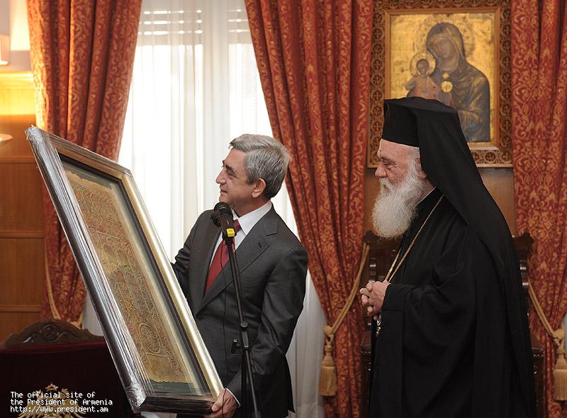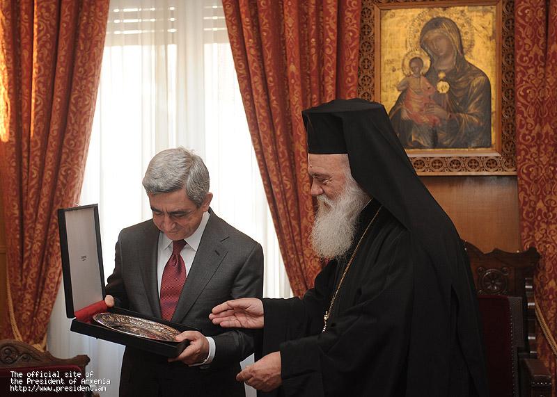 Archbishop of Athens and All Greece and Primate of the Autocephalous Orthodox Church of Greece said that he was elated to meet with Serzh Sargsyan because he was hosting the President of a friendly state. He also spoke about similar historical destinies of the Armenian and Greek peoples, full of hardships and pain.