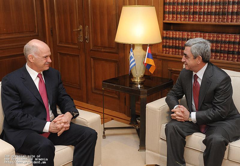 At the meeting with Prime Minister George A. Papandreou, President Serzh Sargsyan spoke about the necessity make the bilateral economic relations correspond to the high level of political relations and invigorate trade and economic contacts.