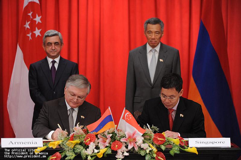 At the Istana residence in Singapore, the official negotiations were concluded with the document signing ceremony. In particular, signed were the Memorandum of Understanding between the Government of the Republic of Armenia and the Republic of Singapore in the cultural area and Agreement between the Government of the Republic of Armenia and the Republic of Singapore on the mutual abolishment of visa regime for the holders of diplomatic and service passports.