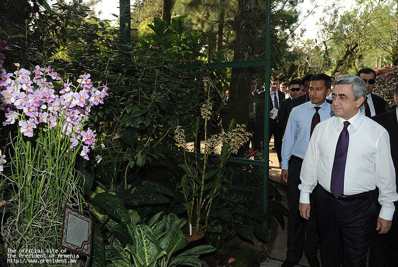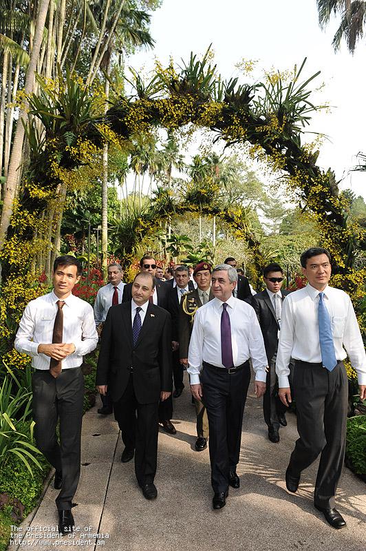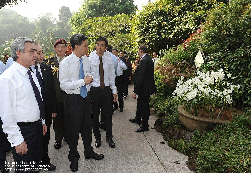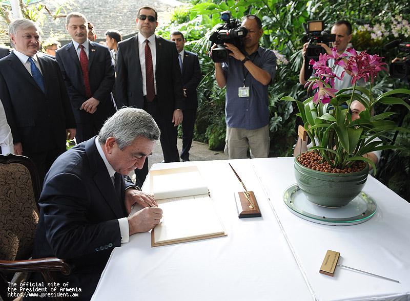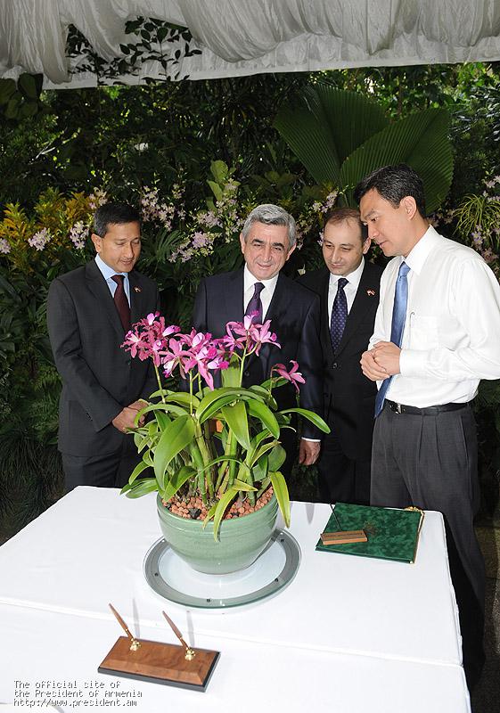 In the inscription made in the Book of Honorary Guests, President Sargsyan wrote on this occasion, “This wonder of nature - “Wanda Miss Joakim” orchid, contains in full measure harmony and beauty which are peculiar to Singapore and its people. I am proud that the national symbol of Singapore bares the name of the Armenian Agnes Joakim. Through her love for everything beautiful, Agnes had forever intertwined the Armenians in the history of the people of Singapore. Let this magnificent flower become also a symbol of the everlasting Armenian-Singaporean friendship.”